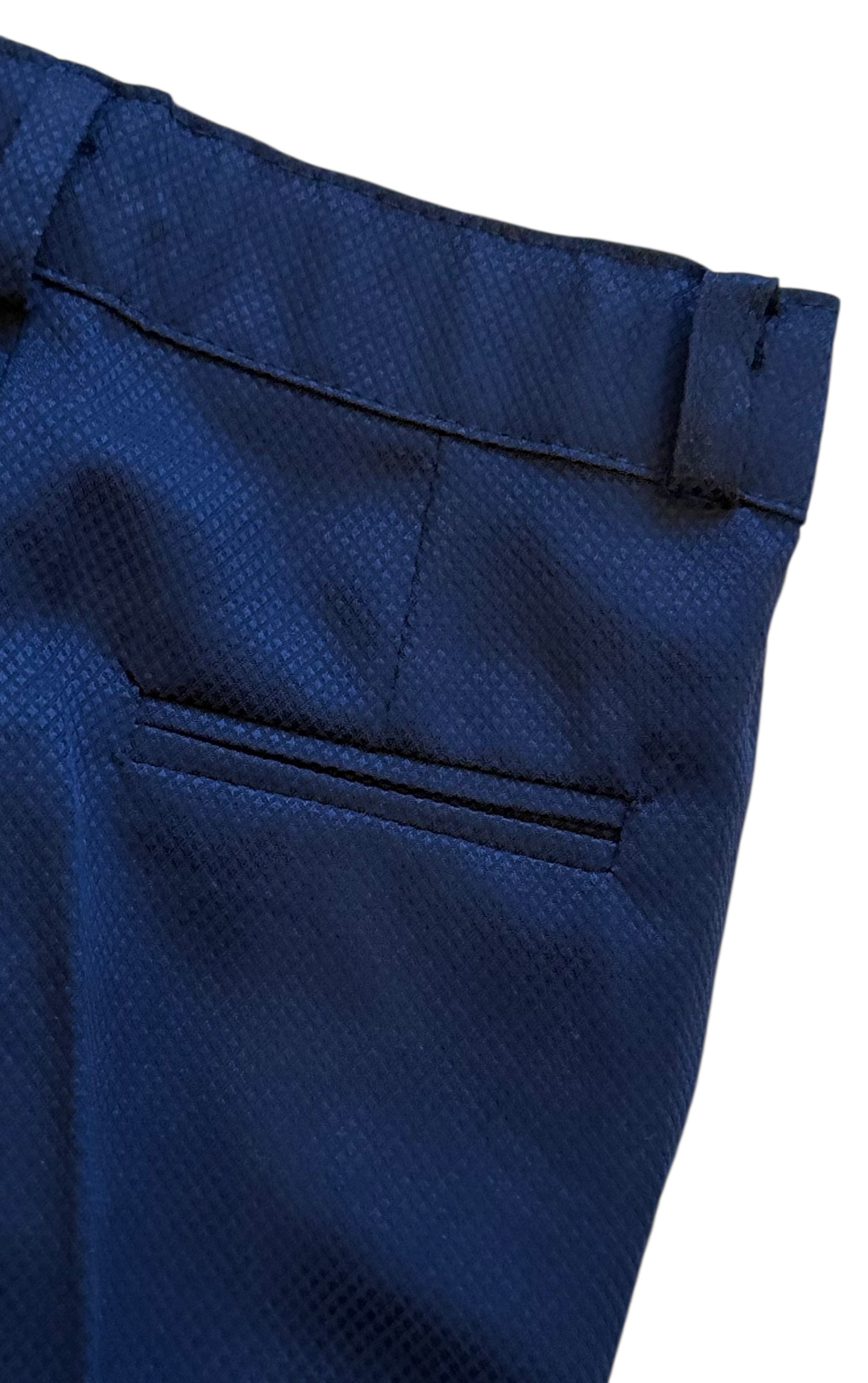 Темно-сині штани. Шлевки на талії, кишені з боків. Регульований еластичний пояс.