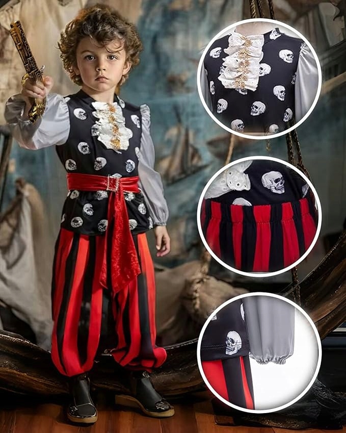 Перетворіть будь-яку вечірку, карнавальний бал чи розваги вдома на справжню морську пригоду! Наш повний піратський костюм містить усе, що потрібно молодому шукачеві скарбів, щоб відчути себе капітаном власного корабля!