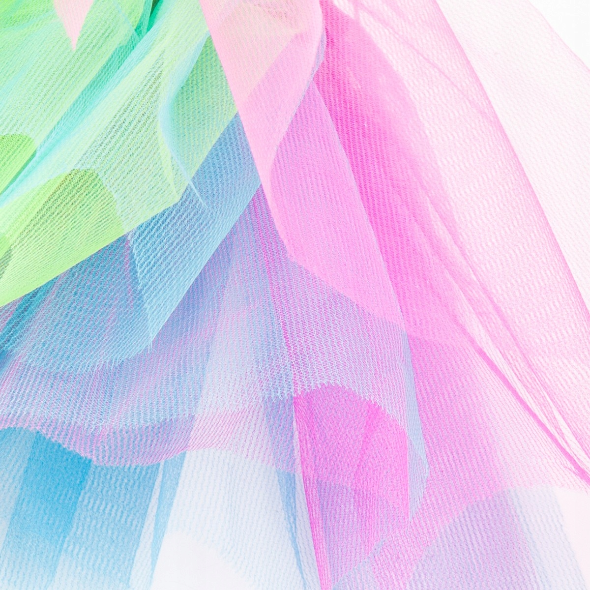Красива барвиста пачка з фатину, яка складається з вільно вшитих кольорових смужок фатину. Класична танцювальна пачка без підкладки, що сковує рухи. Рекомендовано для колготок або легінсів. Щоб досягти ефекту повного розтікання, ми рекомендуємо вам розгорнути спідницю руками після того, як витягнете її з упаковки. Прасування тільки з тканиною на найнижчому рівні.