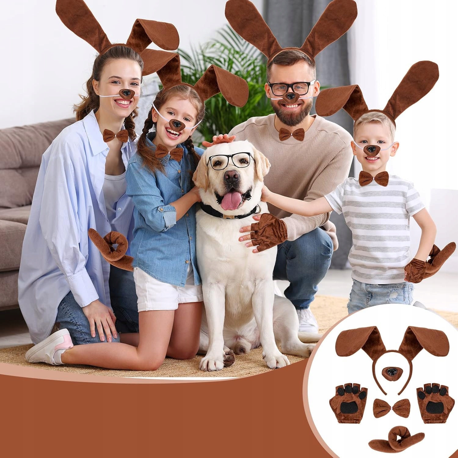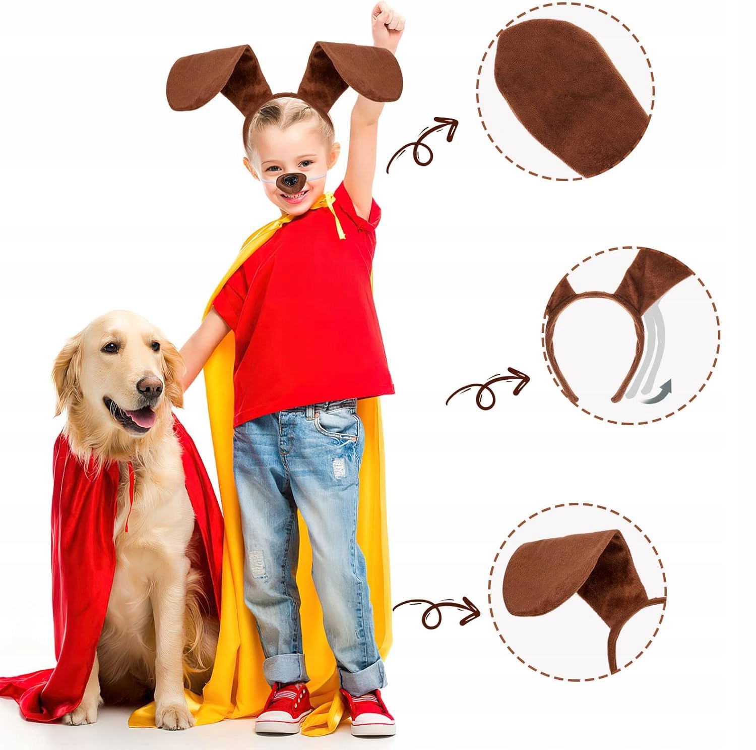 - Коричневі м'які вуха, закріплені на зручній пов'язці на голові.