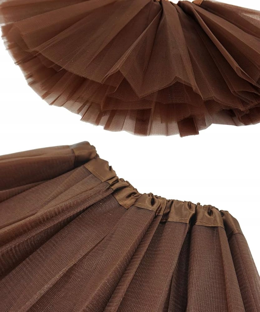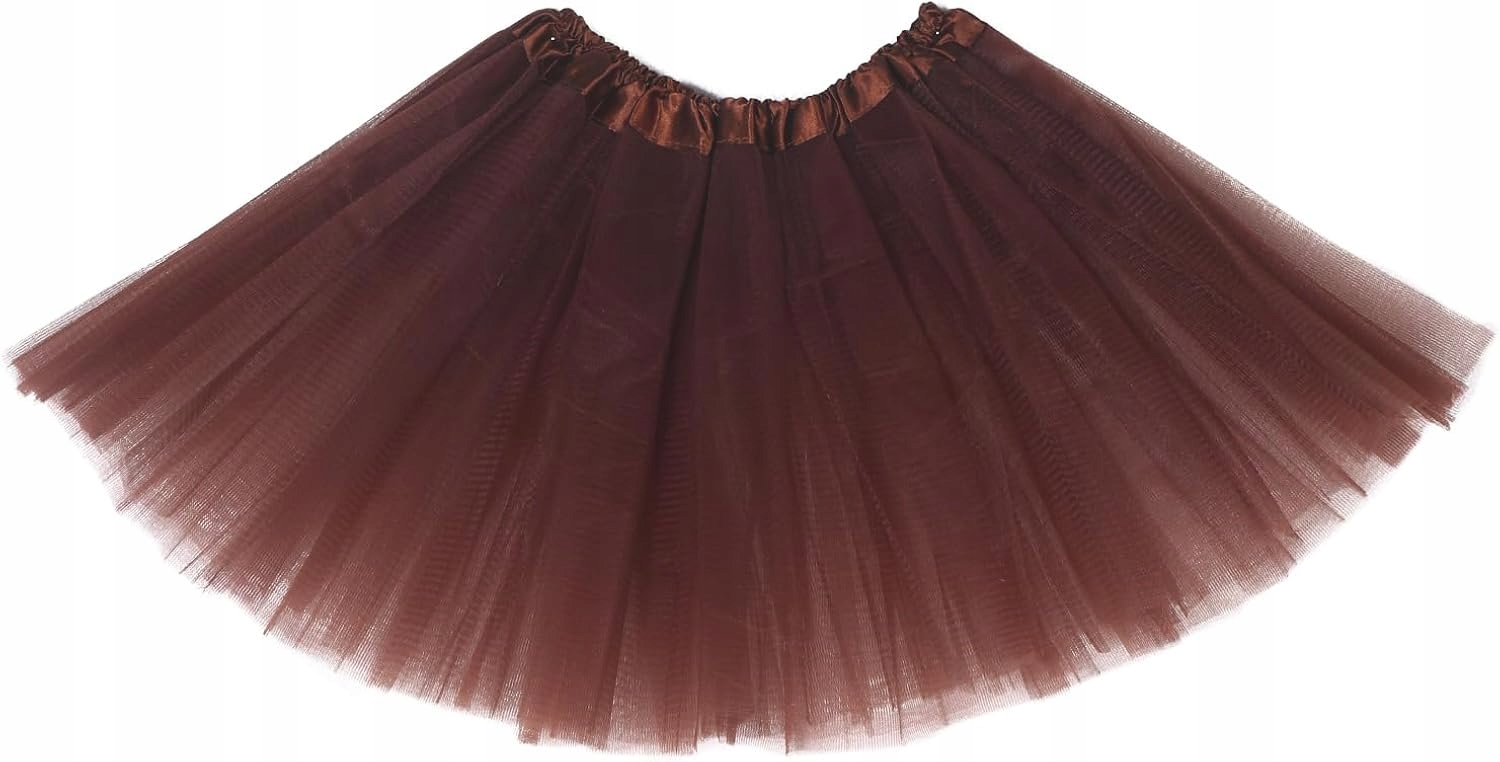 - Коричнева, 2-шарова, зі світлого фатину. Широкий, красиво укладений, завдяки гумці на талії забезпечує зручну посадку.