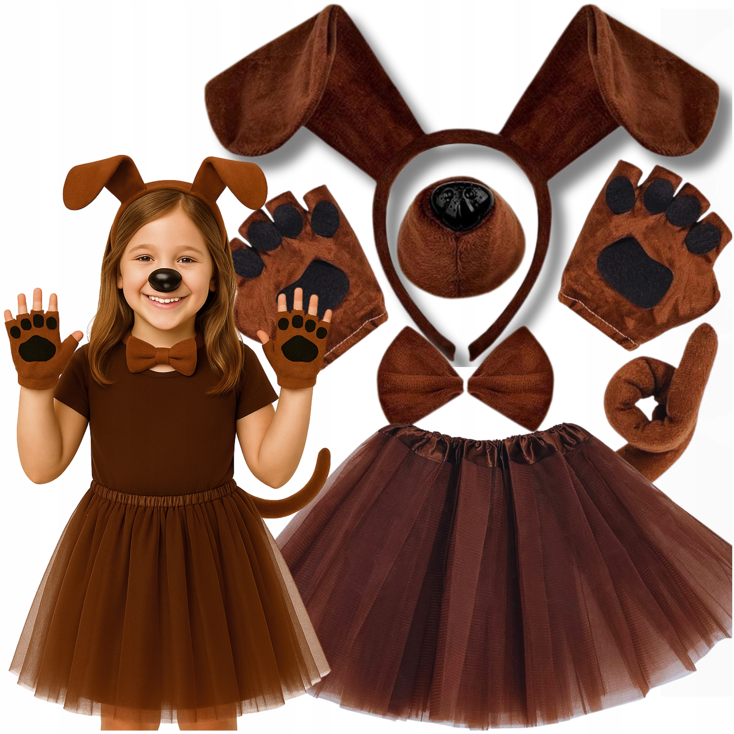КОСТЮМ СОБАЧИЙ КОСТЮМ СОБАКА ПОВ'ЯЗКА ЛАПКИ НОСИК СПІДНИЦЯ КОМПЛЕКТ 6в1