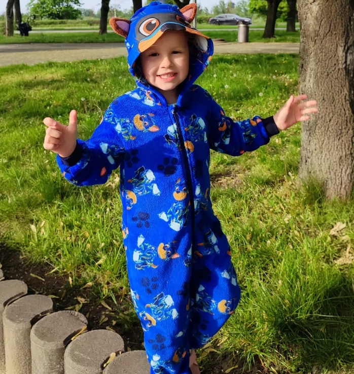 Оригінальний суцільний комбінезон із мотивом «Щенячий патруль» — ідеальна пропозиція для маленьких шанувальників популярної казки. Виготовлений з м'якого плюшевого матеріалу, він забезпечує тепло і комфорт під час сну, ігор або відпочинку вдома. Капюшон із симпатичним мотивом і практичною блискавкою полегшує одягання, а легкий флісовий матеріал гарантує комфорт під час носіння.