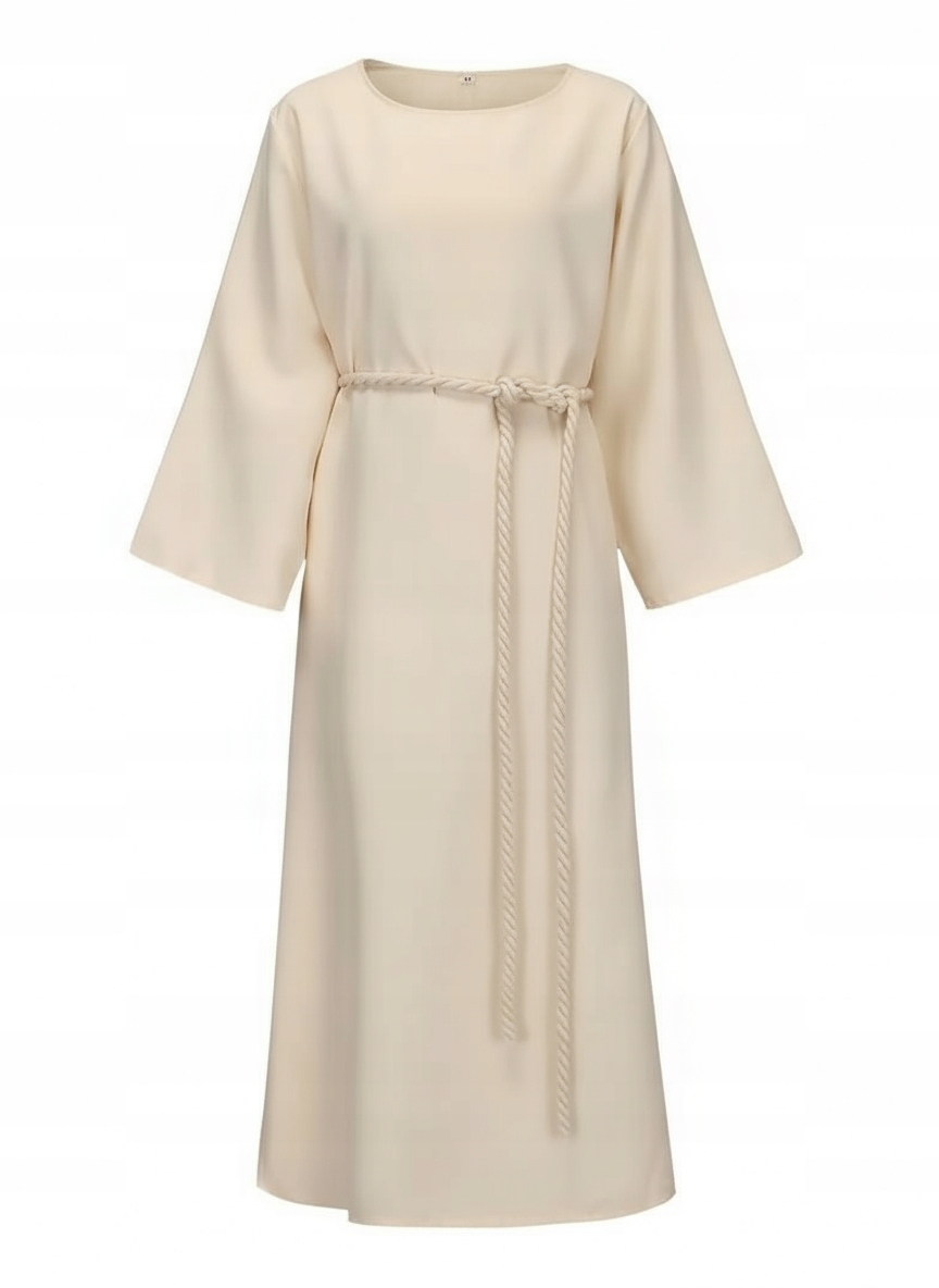 Елегантний і універсальний костюм святого ідеально підходить для вистав, вертепів і шкільних свят. Простий довгий халат кольору екрю з ефектним червоним поясом і мотузкою на талії створює класичний, позачасовий костюм, який можна використовувати для багатьох різних ролей - святого, апостола, пророка, ангела чи біблійної фігури.