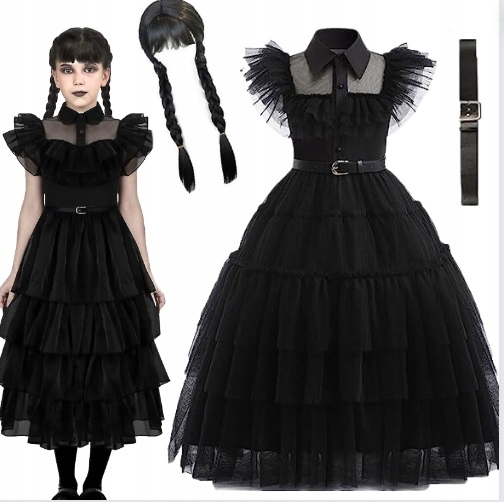 КОСТЮМ - ОДНОРАЗОВА КАРНАВАЛЬНА СУКНЯ WEDNESDAY ADDAMS ДЛЯ ДІВЧИНКИ