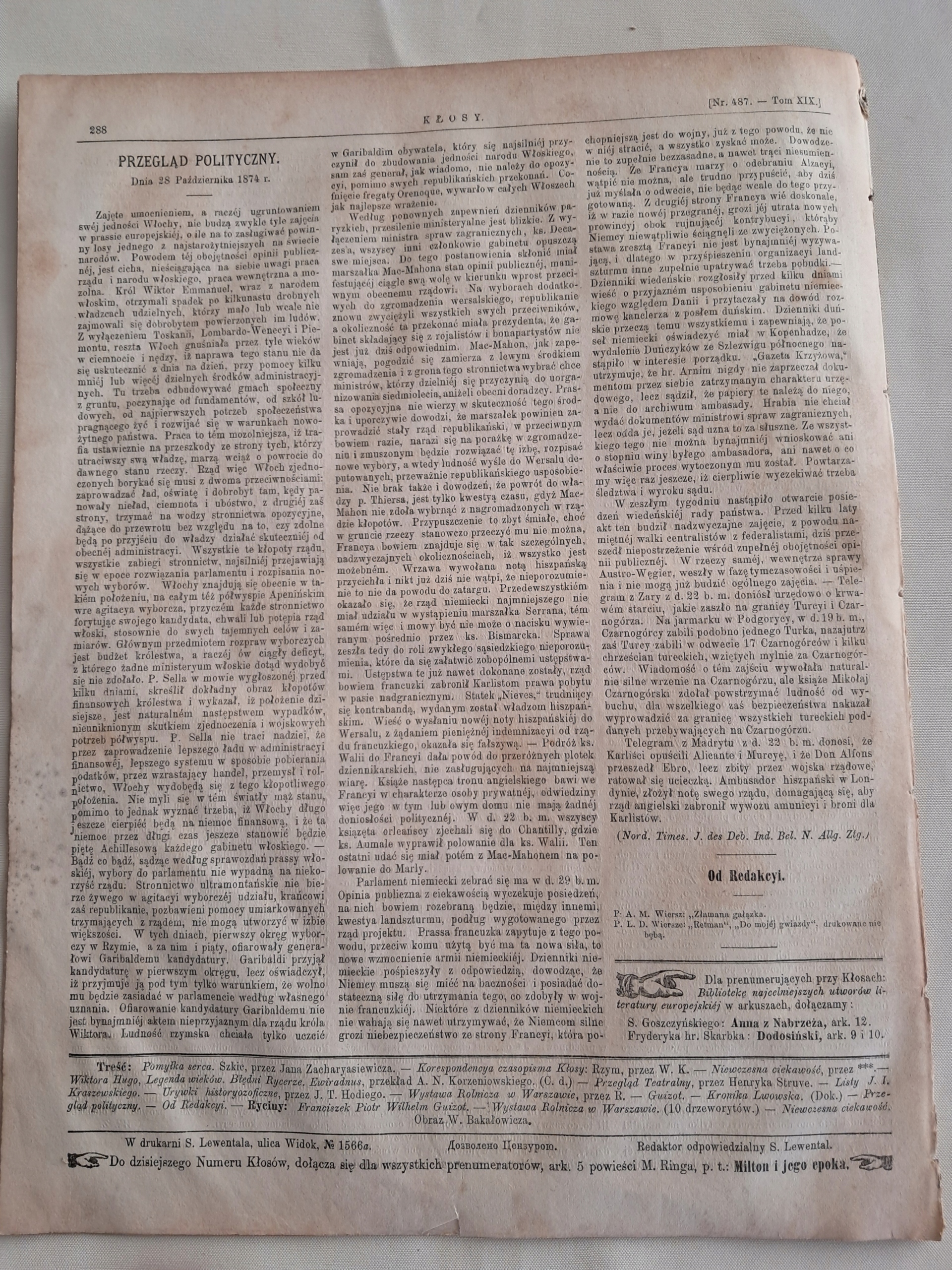 Kłosy 487/1874 Вершавські виставки Bakłowicz у Варшаві