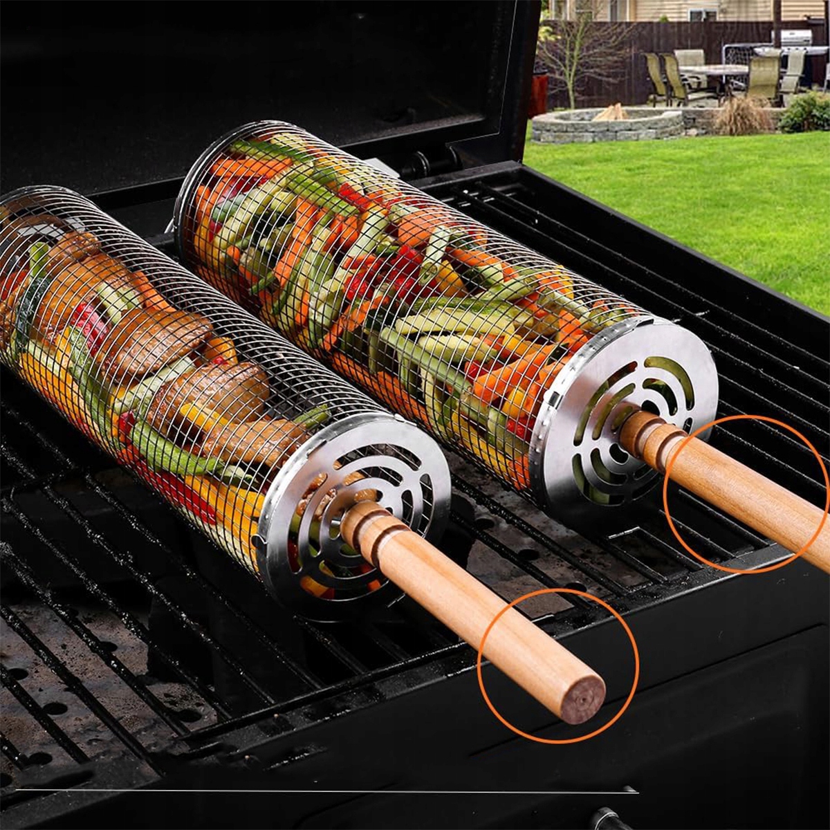 KOSZ DO GRILLOWANIA WARZYW GRILL DUŻY 20CM+31CM ROLKI OBROTOWE 2 SZT