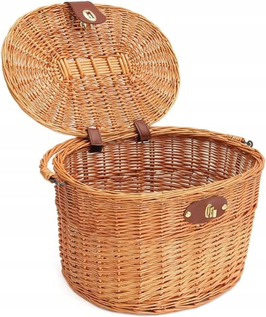 KOSZ KOSZYK PIKNIKOWY WIKLINOWY Z MOŻLIWOŚCIĄ ZAWIESZENIA NA ROWER BRĄZOWY