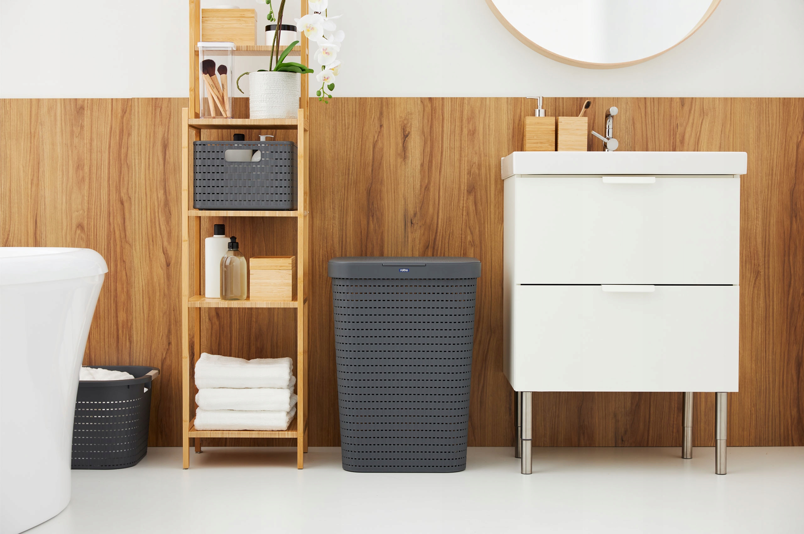 Kosz na pranie brudownik Rotho COUNTRY 55 L Antracyt