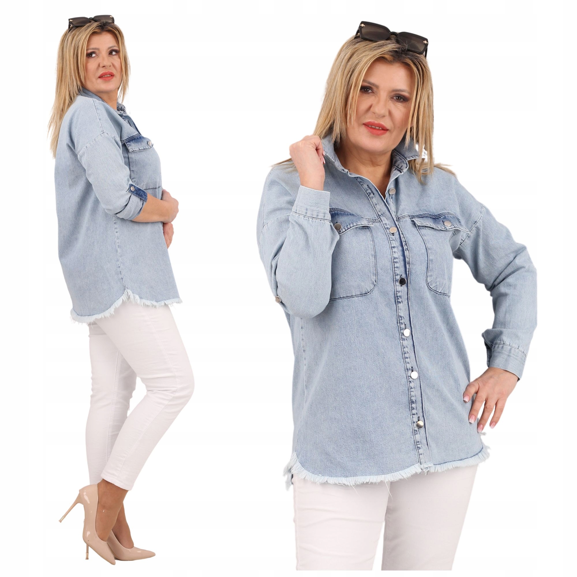 KOSZULA JEANSOWA DAMSKA BAWEŁNIANA DŁUGA MODNA KLASYCZNA ROZMIARY