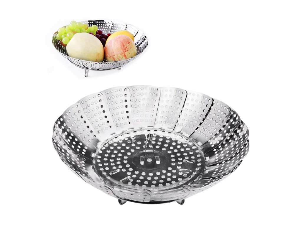 Складна пароварка -можна відрегулювати для каструль і сковорідок різного розміру, регульований розмір (14-22 см). Він розкривається як квітка та утворює форму миски, і її можна розкрити далі в плоску тарілку