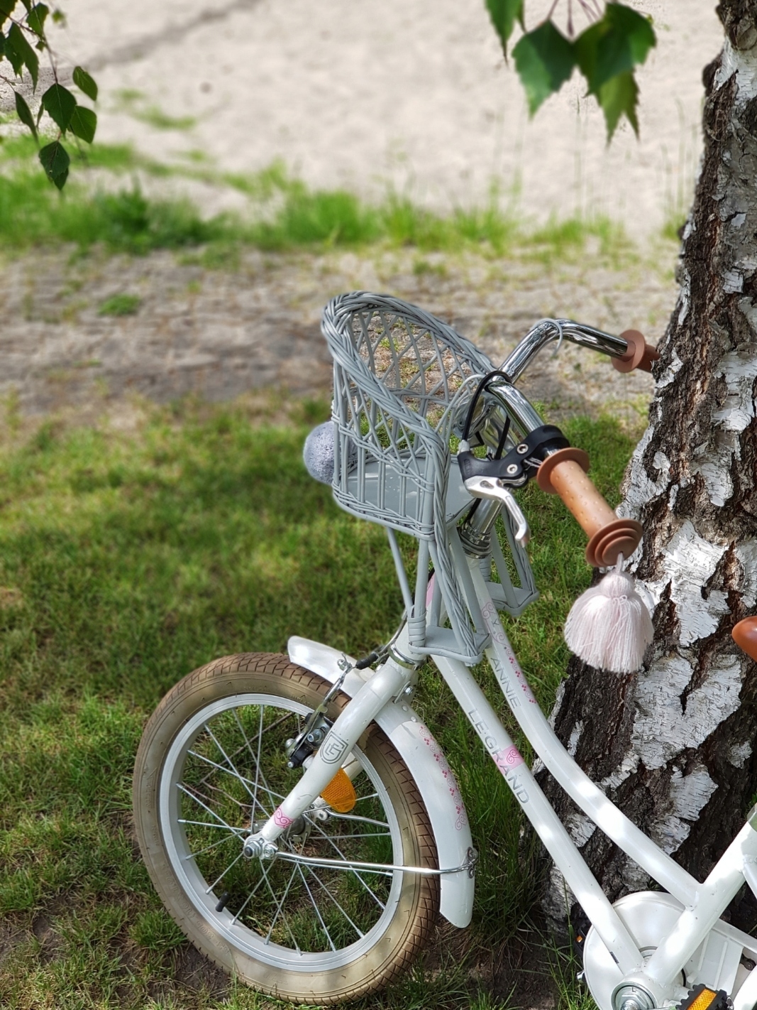 KOSZYK ROWEROWY DLA LALEK WIKLINOWY JASNY SZARY