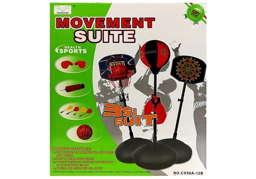 Гра в баскетбол, бокс або дартс має позитивно впливає на фізичний стан, розвиває координацію рук і очей і вчить командній грі, гарантуючи, що ваша дитина буде весело проводити час на свіжому повітрі. Нехай ваша дитина насолоджується рухом і грою з нашим набором 3 в 1!