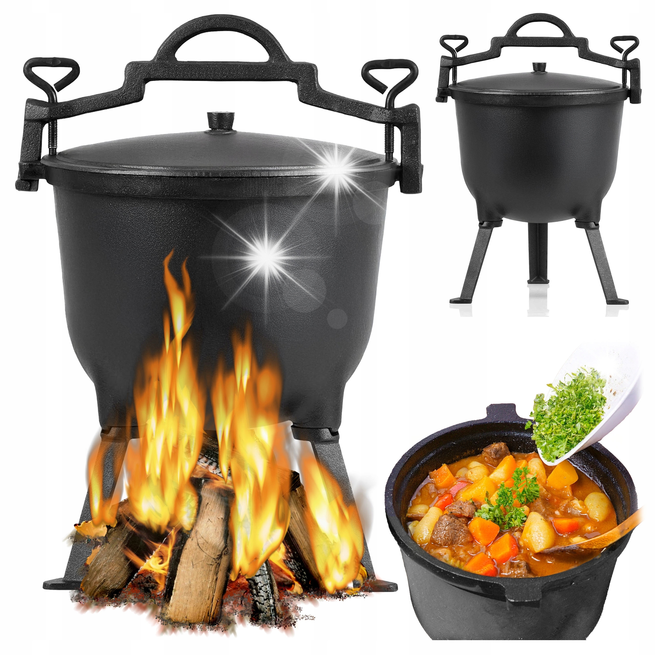Насолоджуйтесь смаком страв, приготованих просто неба! Чавунна каструля Kesel ідеальне рішення для тих, хто любить готувати на багатті - міцна, містка і надзвичайно практична. Дозволяє здорове приготування їжі без жиру, рівномірно розподіляє тепло і дозволяє тривалий час зберігати температуру їжі. Завдяки міцній конструкції та стійким ніжкам ви можете використовувати його в будь-яких умовах, а зручна ручка полегшує перенесення та підвішування над вогнем. Ідеально підходить для приготування їжі для всієї родини або компанії друзів.
