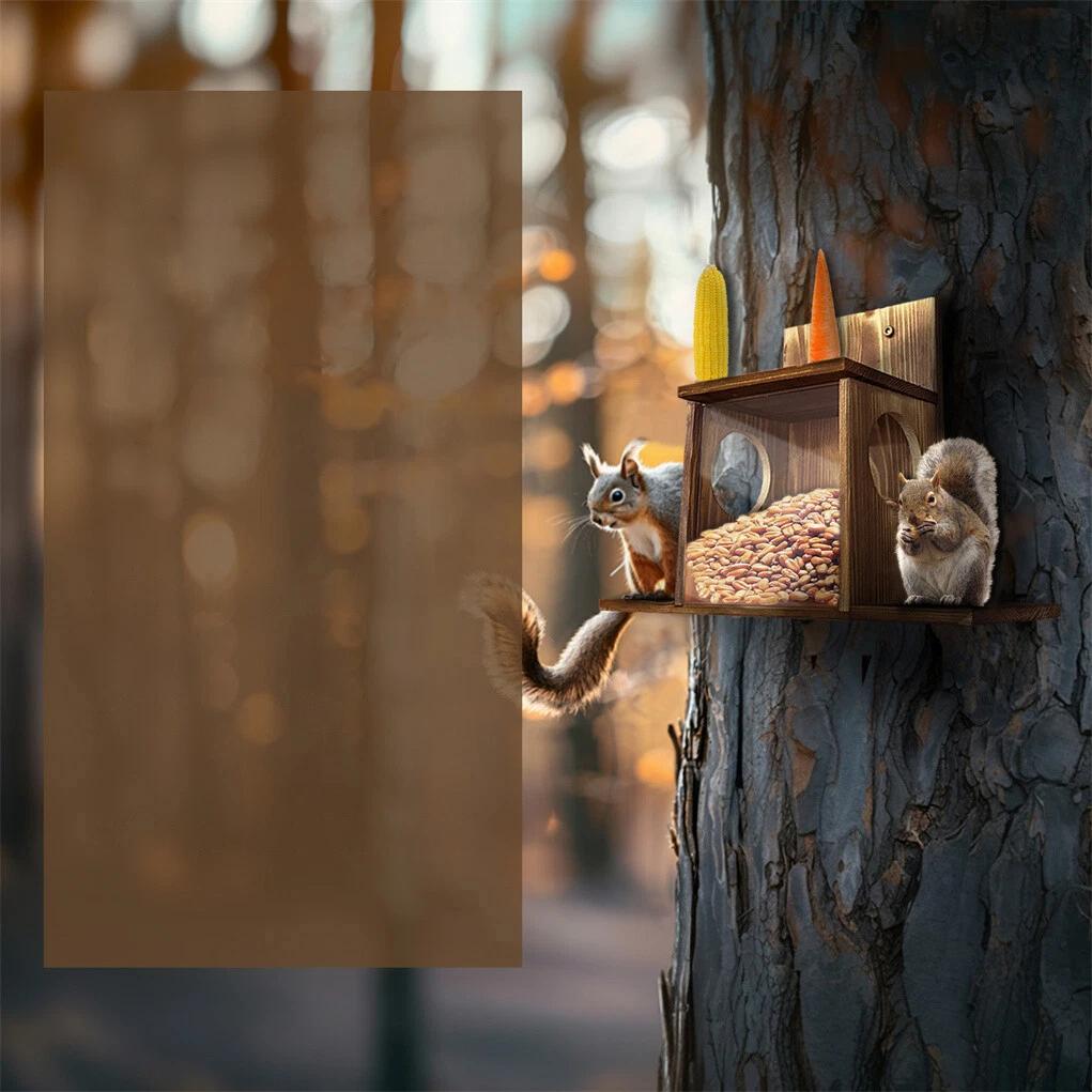 Ця годівниця для білок виготовлена з міцної деревини та має міцну верхню частину з оргскла. Конструкція дуже стійка. Він стійкий до вітру та дощу, тож ви можете легко наповнювати їжу, не турбуючись про те, що вона намокне.