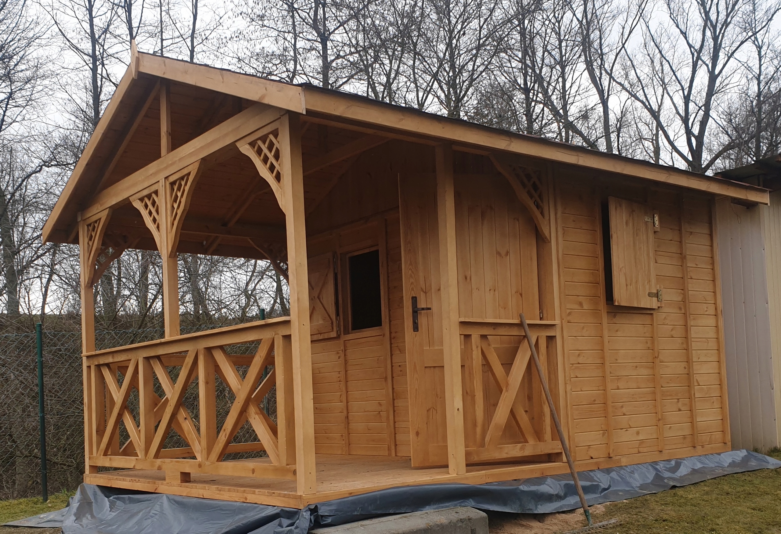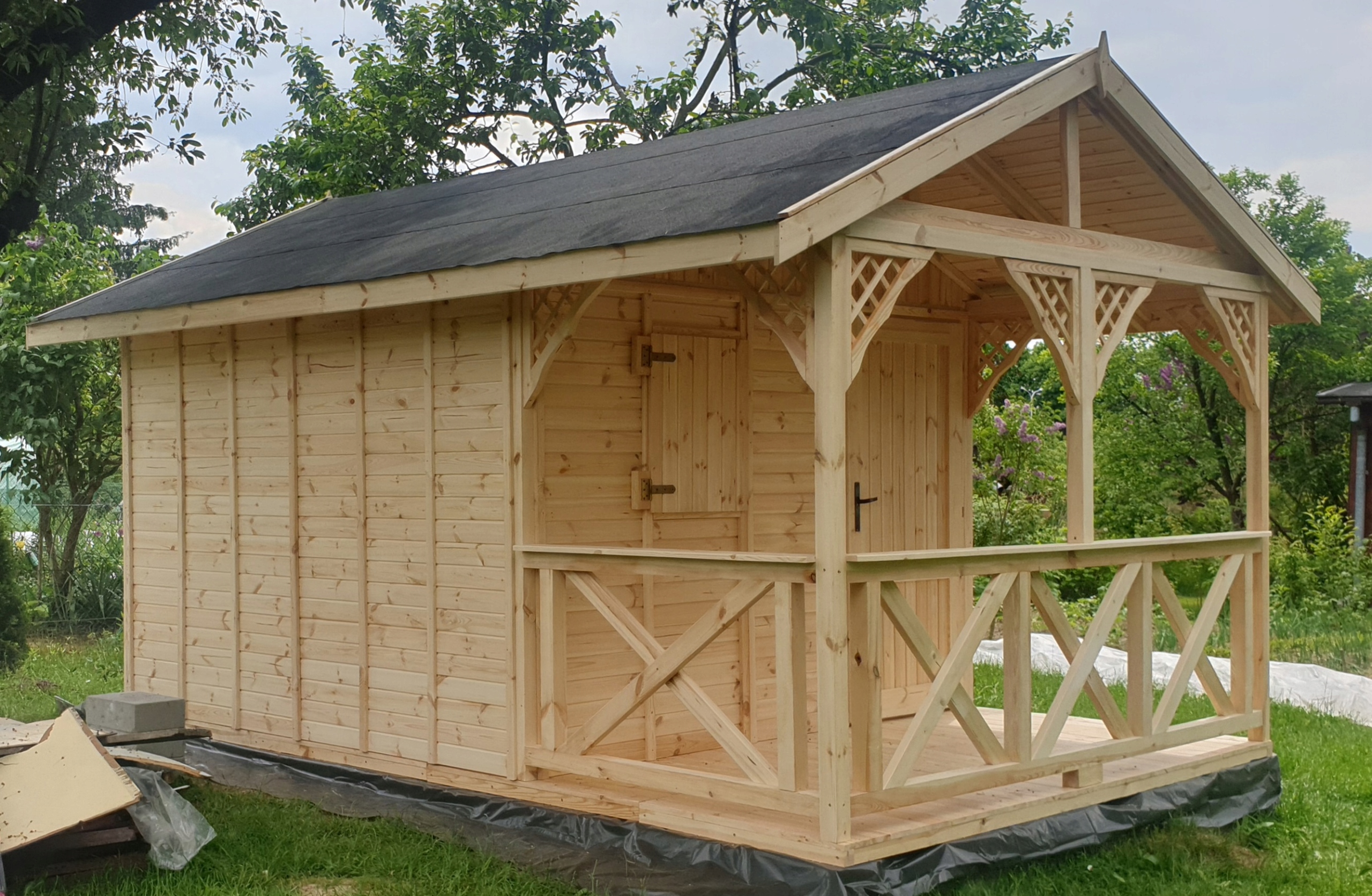 Domek letniskowy ogrodowy altana drewniana altanka na ROD 4x3 m z tarasem