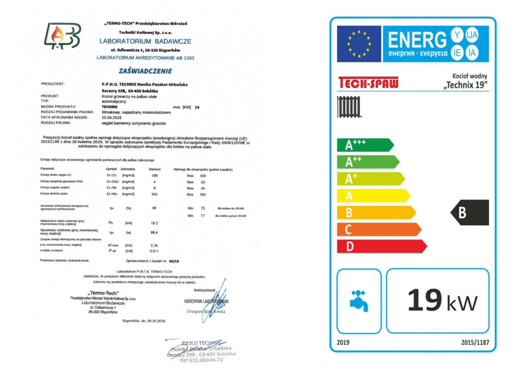Цей продукт пройшов випробування в двох незалежних державних лабораторіях і в кожній з них отримав сертифікат сертифікат котла відповідно до класу 5 (PN-EN 303-5: 2012)та екодизайну (2020- 2009/125/EC). Завдяки цьому ви отримаєте державну субсидію на покупку пристрою.