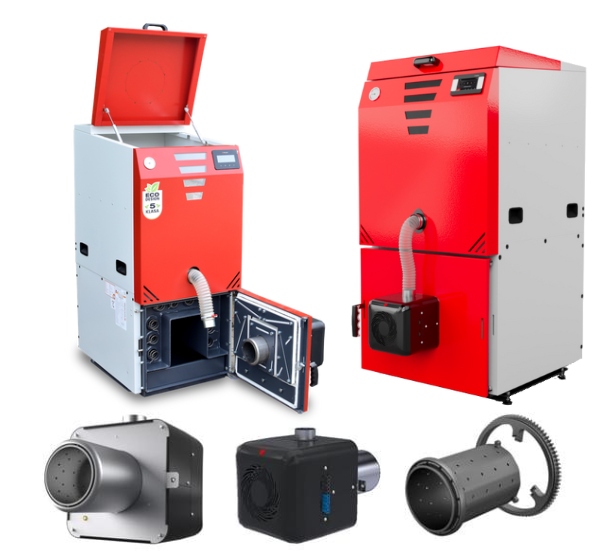 Печі центрального опалення виготовляються в діапазоні потужностей 12-30 кВт. з автоподатчиком засновані на трубчастому теплообміннику. Котли оснащені пелетним пальником Revo від відомого бренду PellasX, з автоматичним запальником і ротаційною системою самоочищення камери. Завдяки продуманій конструкції, робота пелетного котла зводиться лише до періодичної поповнення бака та видалення золи із зольника. Піч розрахована на роботу в багатодобовому циклі. Невеликий розмір означає, що котел SlimKo Plus підійде для будь-якої котельні. Конструкція топки базується на трьох інтегрованих модулях: