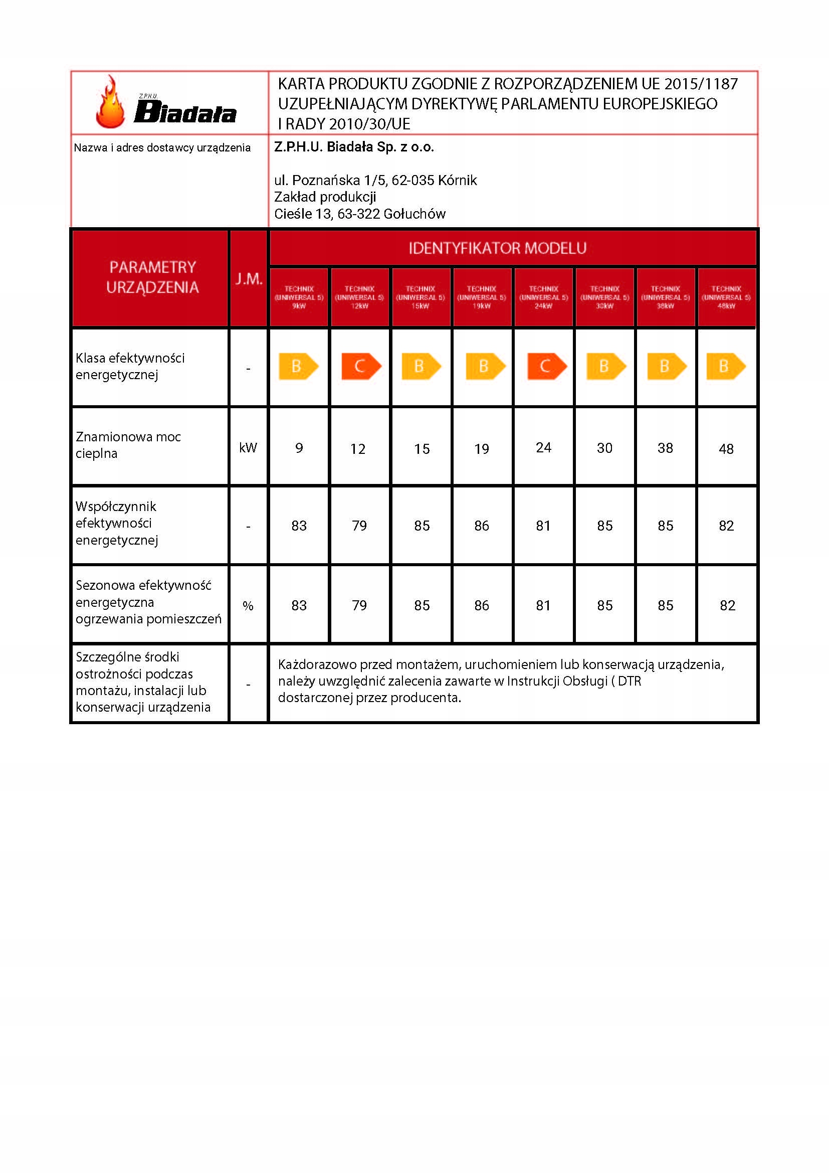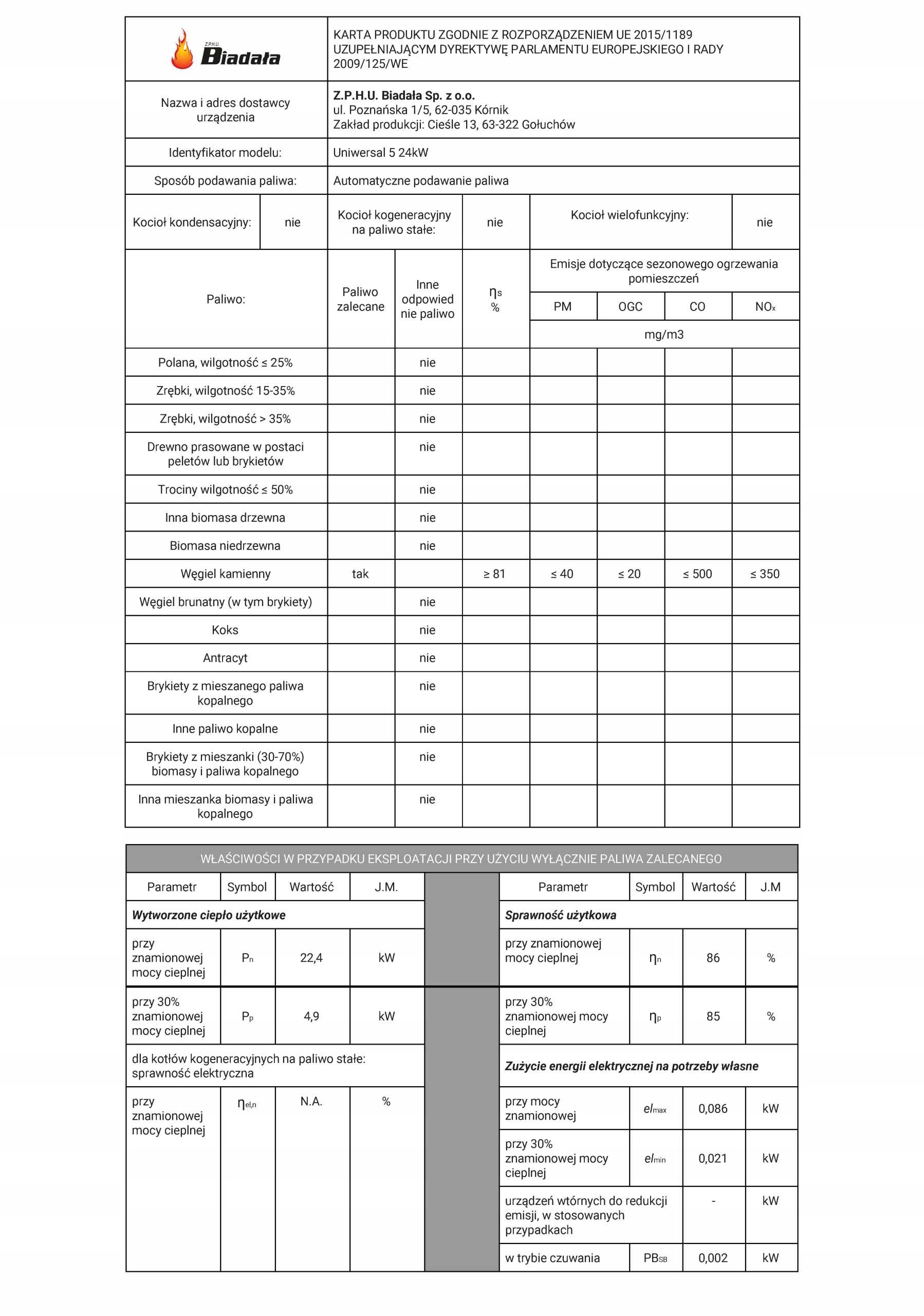 З 1 липня 2018 року котел буде відповідати новим стандартам. п'ятий клас PN-EN 303-5: 2012 і нещодавно встановлені стандарти ECODESIGN 2020.