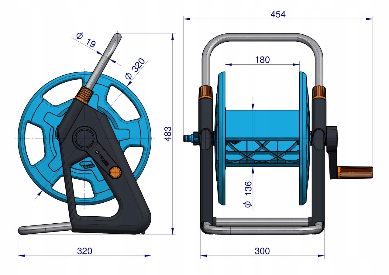 Котушка для шланга / TEGER / Високоякісна, стабільна та довговічна котушка для садового шланга. Дозволяє зберігати шланг довжиною до 45 м. Зберігання полегшується завдяки ручці, а спеціальна форма опори гарантує відмінну стабілізацію. Кутове з'єднання шланга запобігає його згортанню, перегину або скрученню під час намотування або згортання. Ємність шланга 1/2" (12,5 мм) / 45 м, 5/8"" (15 мм) / 30 м, 3/4"" (19 мм) / 20 м"