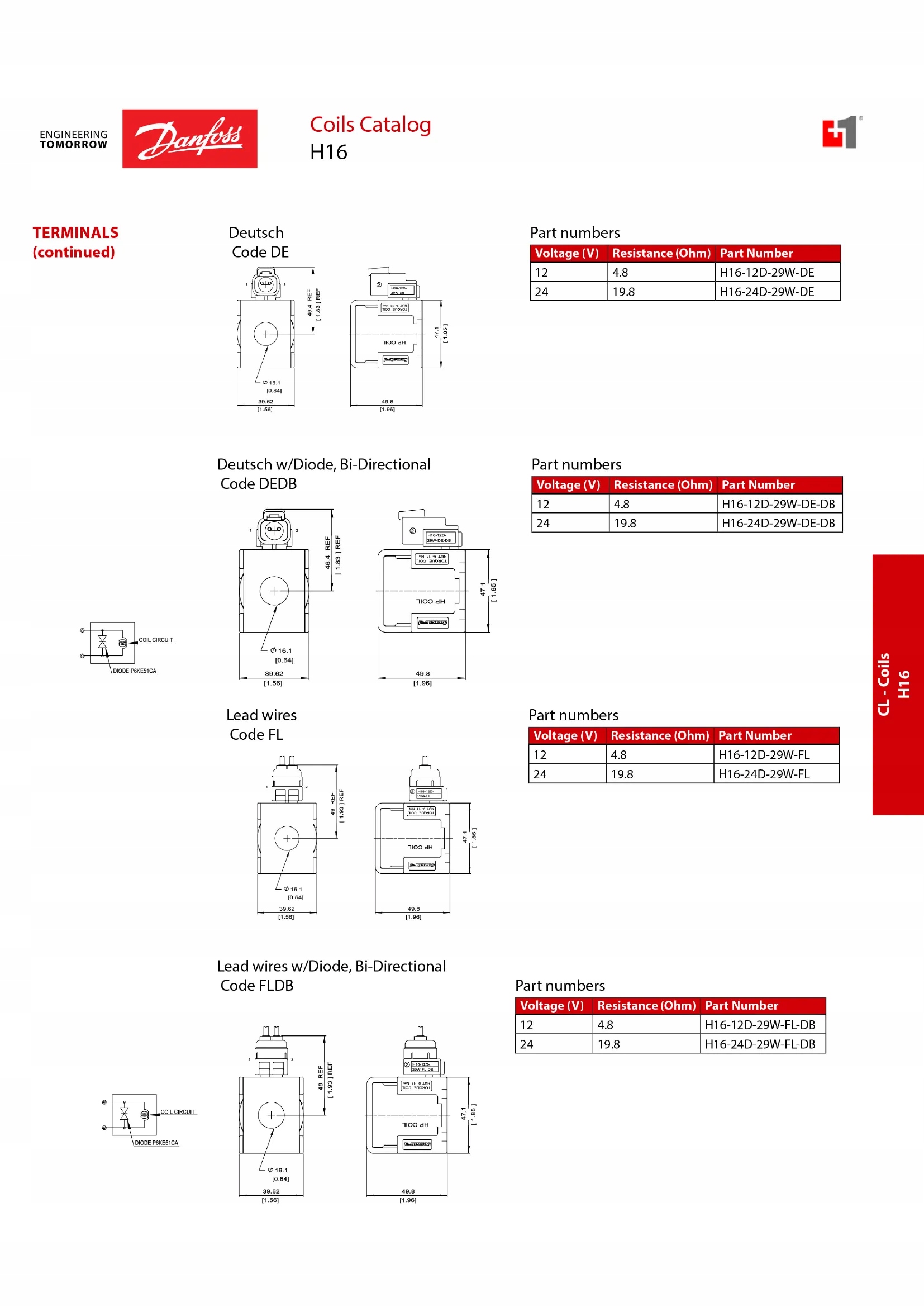 Котушка H16-24d-29w-de p/n: 11039517-danfoss