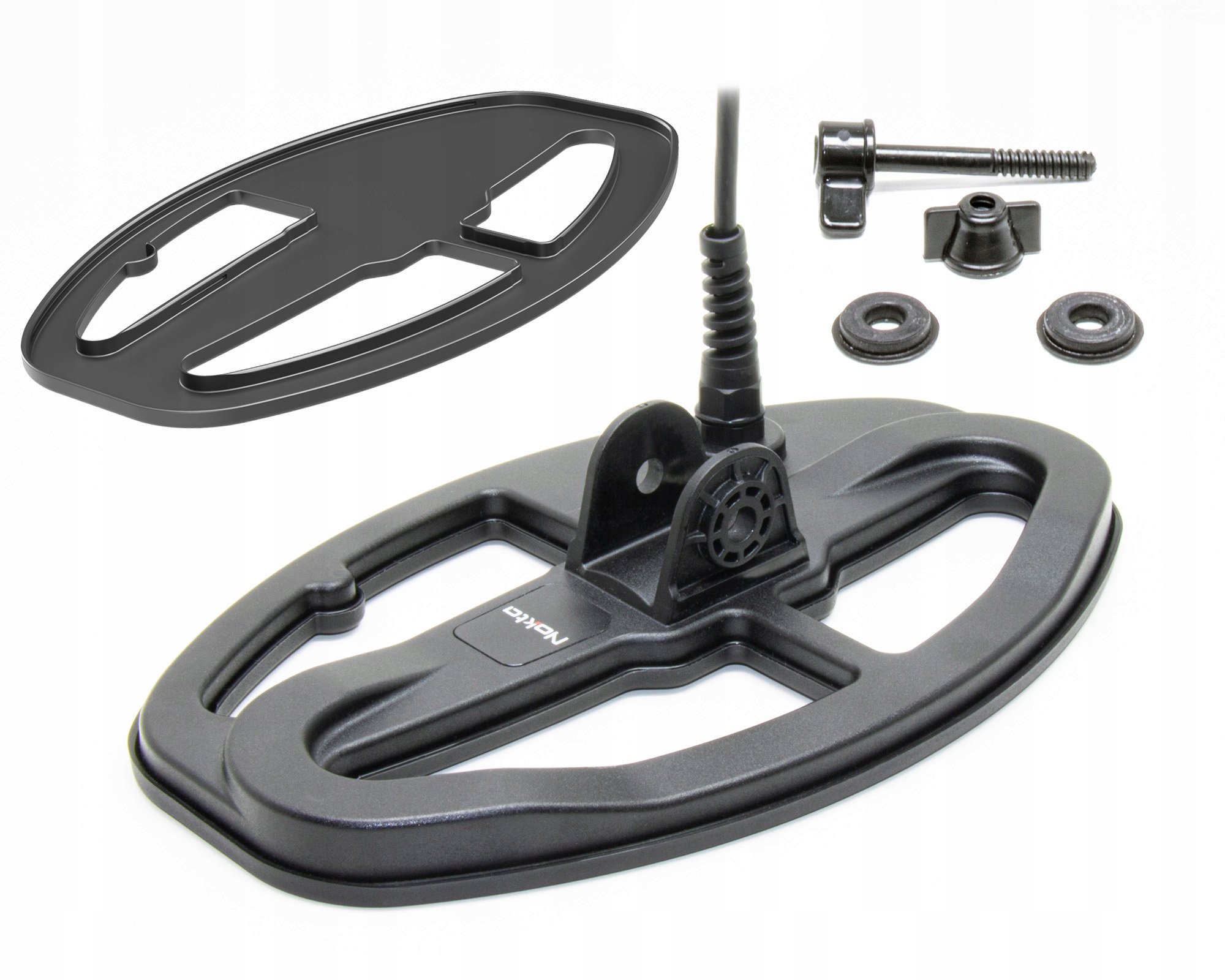 У комплекті з котушкою SX24 ми отримуємо спеціальну кришку для неї, яка встановлюється на заводі на котушці та набір кріпильних гвинтів для підсідельного штиря. Крім того, на з’єднувальному кабелі є прогумований ковпачок для захисту роз’єму котушки, якщо вона не підключена до детектора.