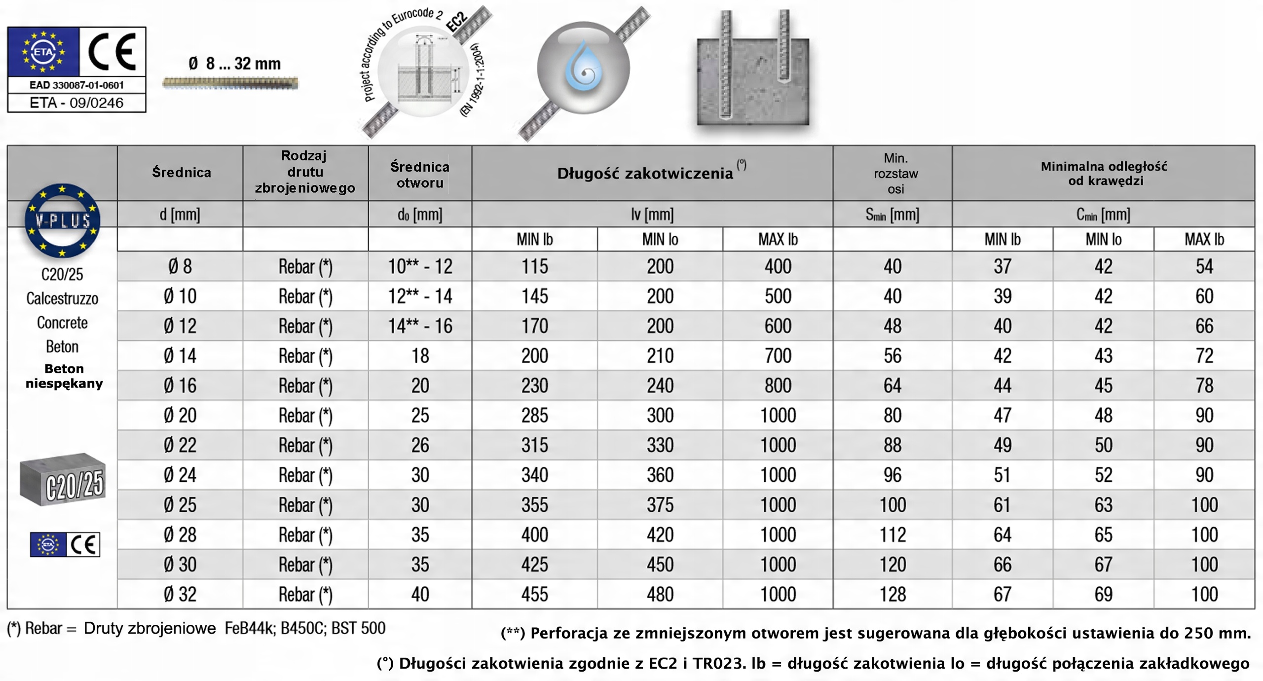 Двокомпонентна вінілефірна смола, призначена для використання в бетоні, камені, повнотілій та силікатній цеглі, газобетоні та, після використання додаткової сітчастої втулки, також у м’яких матеріалах та отворах у порожнистій цеглі, поротермній або перфорованій цеглі.