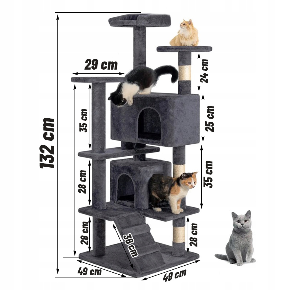 Котяча дряпка Ліжко на дереві Будиночок 131 см, 6 рівнів, 2 платформи, вежа