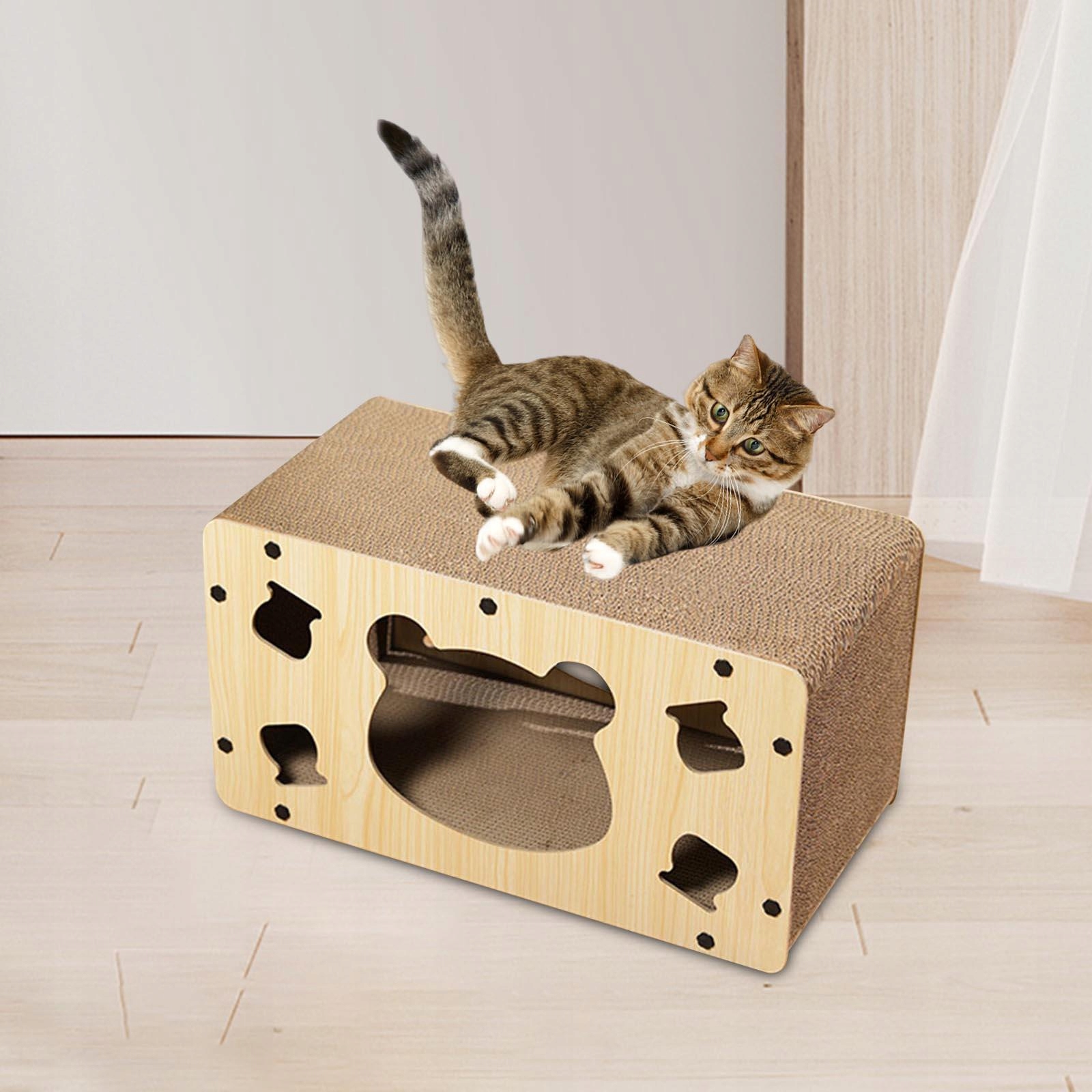 [Стійкий матеріал] Поштова скринька для котячих подряпин виготовлена з гофрованого картону, який можна переробити, і композитної дерев’яної дошки.