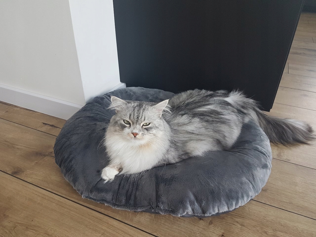 - anti -allergic - filled with an anti -allergic silicone ball, which ensures comfortable rest for a cat and does not expose it to allergies, a pillow coating 100% polyester fabrics,