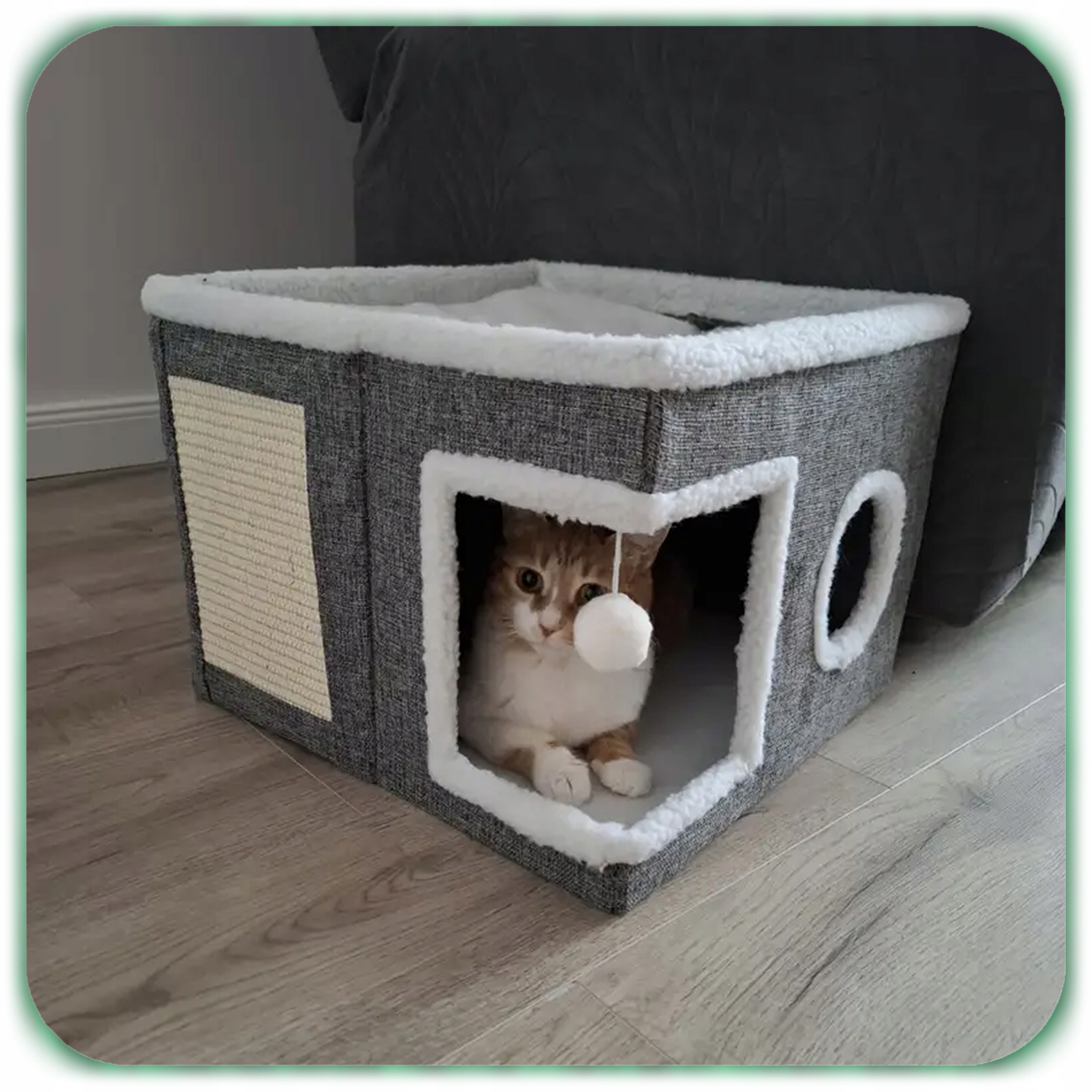 СКЛАДНИЙ ДВОПОВЕРХОВИЙ БУДИНОК ДЛЯ КОТІВ - СІРИЙ З ПЛЮШЕМ 42×42×31 см