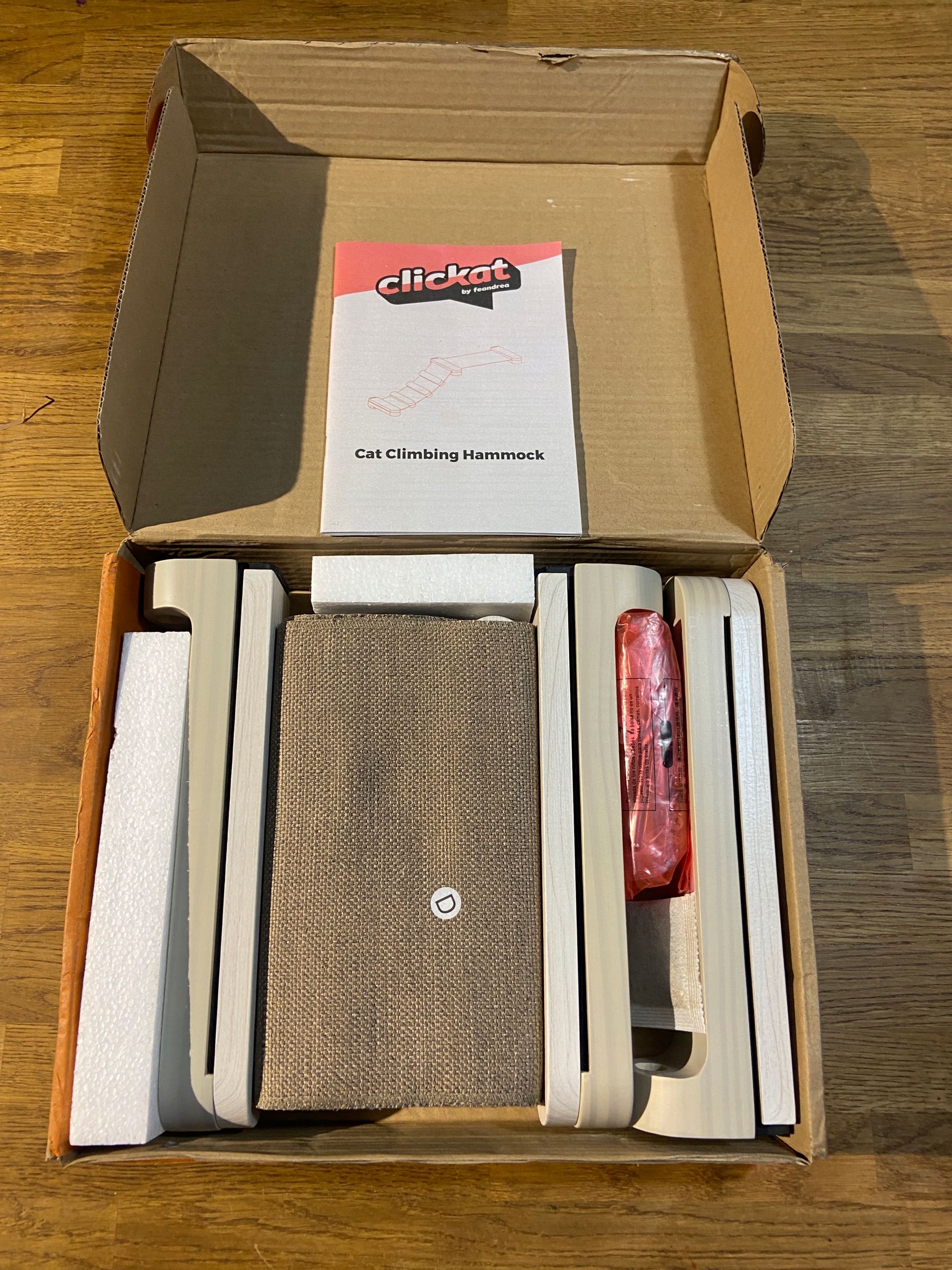 Наша унікальна структура Clickat робить збирання та розбирання цього котячого гамака легким. для настінного монтажу - це дитяча гра та економія 50% часу. Просто вставляйте деталі, доки не почуєте клацання – готово!