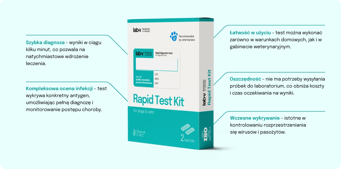 - Профілактичні тести: тест можна використовувати в розплідниках і притулках, де ризик інфекцій вищий.