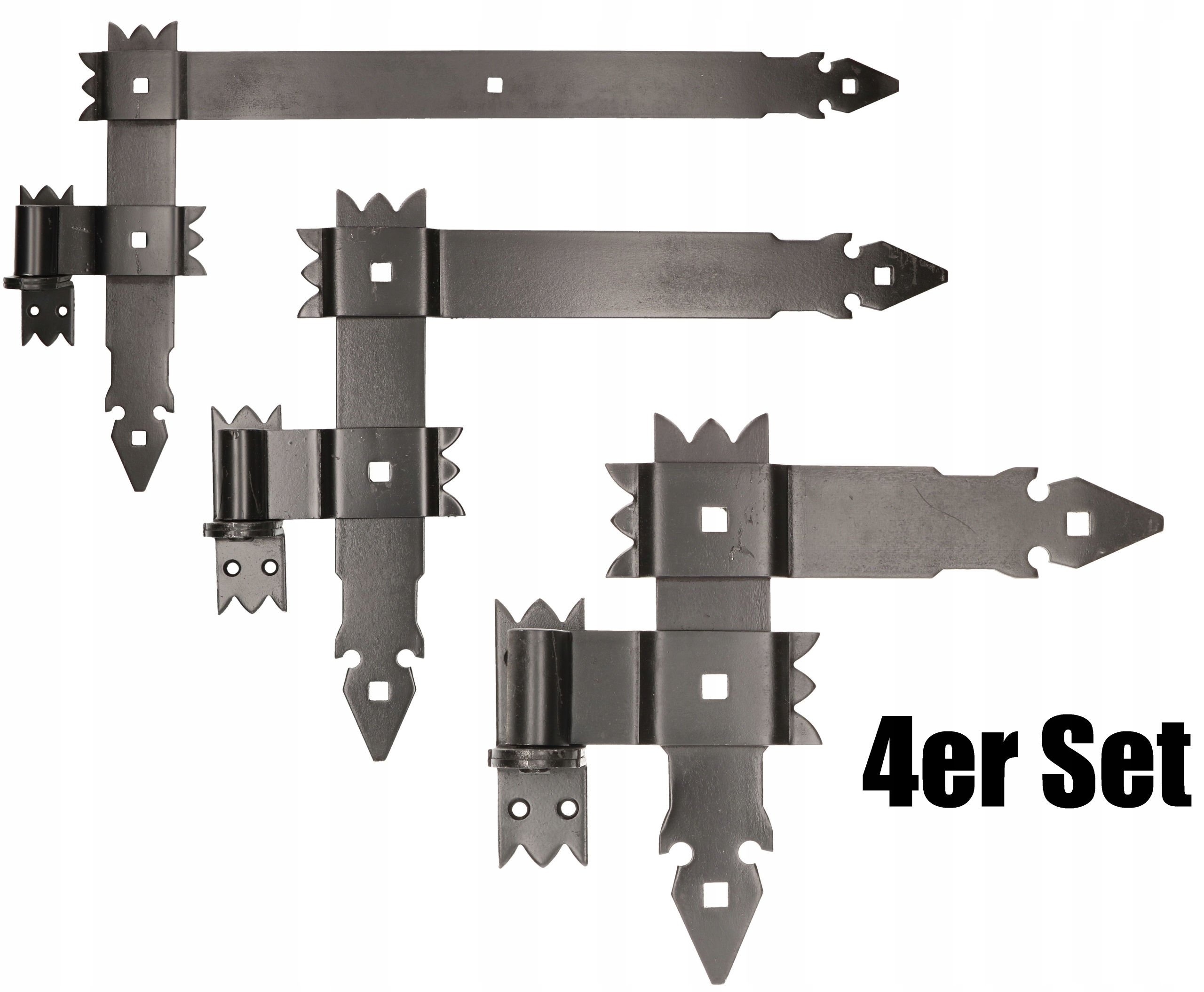 Пропозиція включає 4 кутові петлі з 4 гаками для кріплення. Ці 8 елементів створюють функціональний комплект у стилі хайлендер. Петля підходить для установки в дерево, метал або цеглу. Забезпечує плавний рух віконниць при їх закриванні та відкриванні.