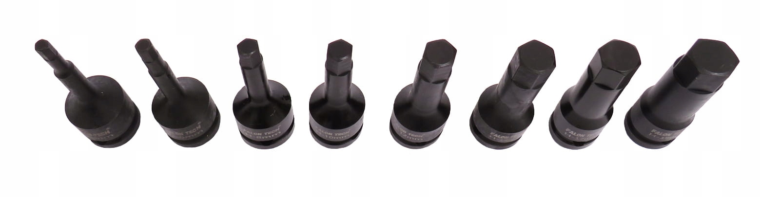 ПРОФЕСІЙНИЙ набір ударних головок від відомого бренду FALON TECH, містить шестигранні довгі шестигранні ударні головки IMBUS (78 мм) популярних розмірів від H5 до H19 мм. Розсувні гнізда дозволяють отримати доступ до глибоких гвинтових гнізд. Ключі захищені від небажаного вислизання шпильки з гнізда (отвори для кульки).