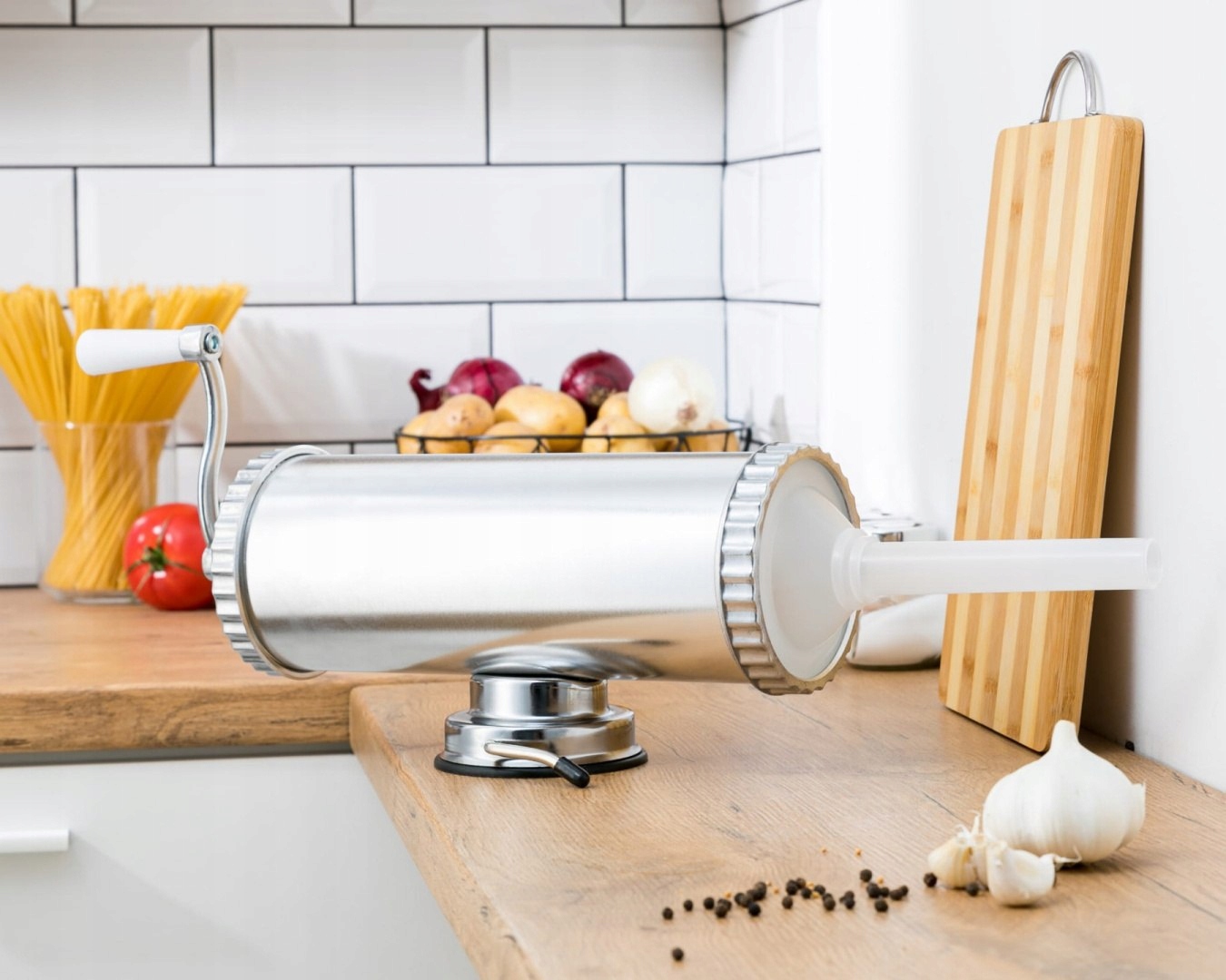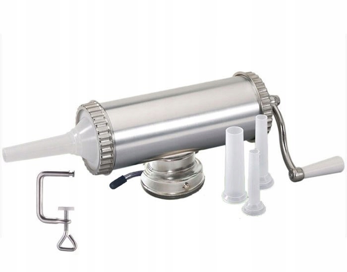 рукотворність з розміром м'ясного навантаження 2,5 кг (5 фунтів) - ідеальний пристрій для наповнення чохлів на фарбах з козлами, призначені для Домогосподарства та магазини м'ясних господарств або м'ясні магазини. Матчальники дозволяють виробляти широкий спектр ковбас, від Кабаноса та ковбас до класичних ковбас і салямі залежно від розміру воронки, що використовується для наповнення. і 13 мм. P> Циліндричний діаметр: 11 см