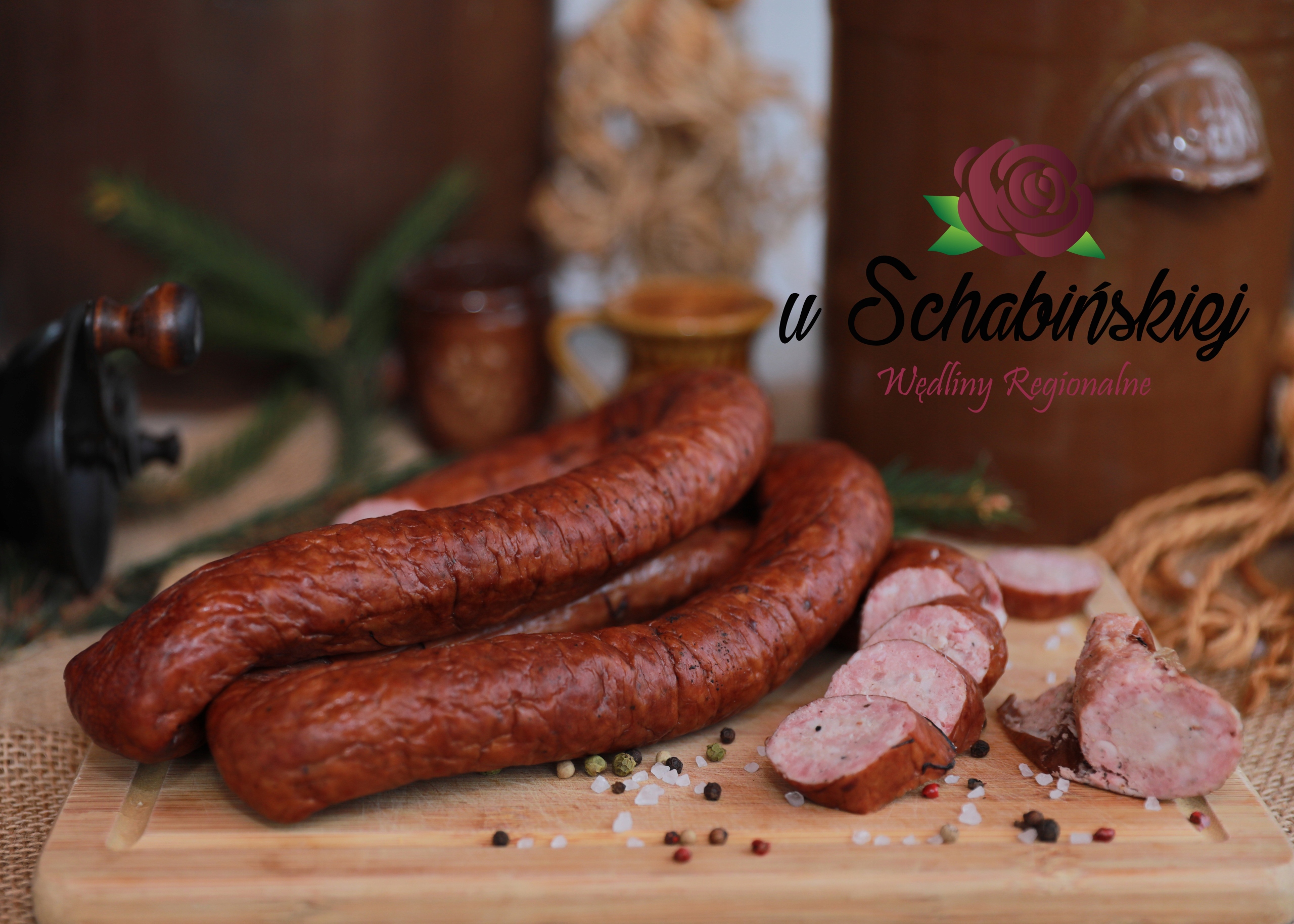 Наша сільська ковбаса виробляється роками за старовинним польським традиційним рецептом. Крім чудового зовнішнього вигляду, він має інтенсивний смак і неповторний запах, дуже добре витриманий і не надто жирний.