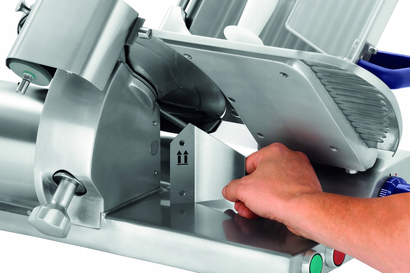 Вбудований механізм і точило для ножів забезпечують тривалий термін служби пристрою та усувають необхідність частого обслуговування . Потужність двигуна 0,16 кВт і максимальна швидкість обертання 300 об/хв гарантують швидке і точне нарізання м'ясної нарізки і сиру.