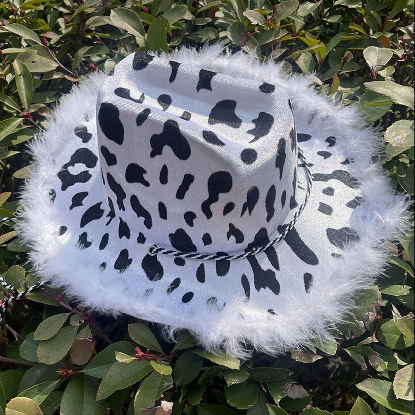 ВЗІЗУНОК КОРОВИ: ковбойський капелюх із цим візерунком корови доступний у чорно-білому кольорі, що привертає увагу, з тонкими деталями, які виділяють вас