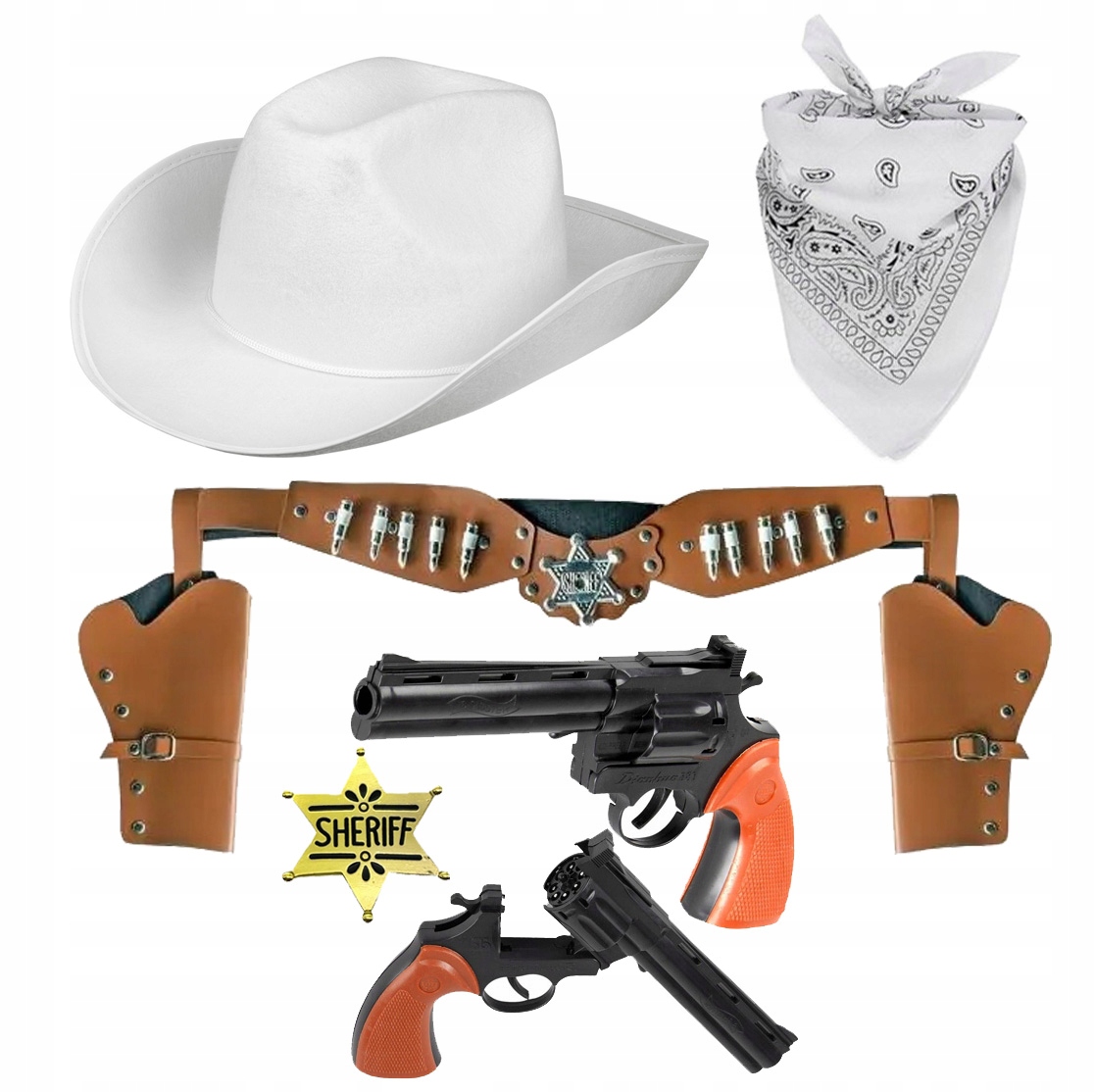 КОВБОЙСЬКИЙ СКЛАД КАПЕЛЮХ БІЛА БАНДАМА КОБУРА 2 РЕВОЛЬВЕРИ МЕТАЛЕВИЙ ЗНАЧОК ШЕРИФА