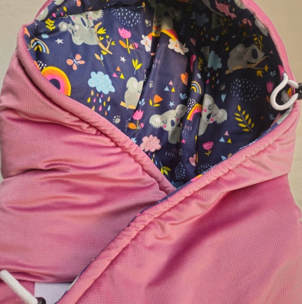 Спальний мішок має товсту, вшита пухнаста силіконова підкладка, безпечна та ідеальна для немовлят (має відповідний сертифікат). Покривало дуже тепле, підходить для зими, однозначно тепліше, ніж традиційна ковдра для автокрісел.