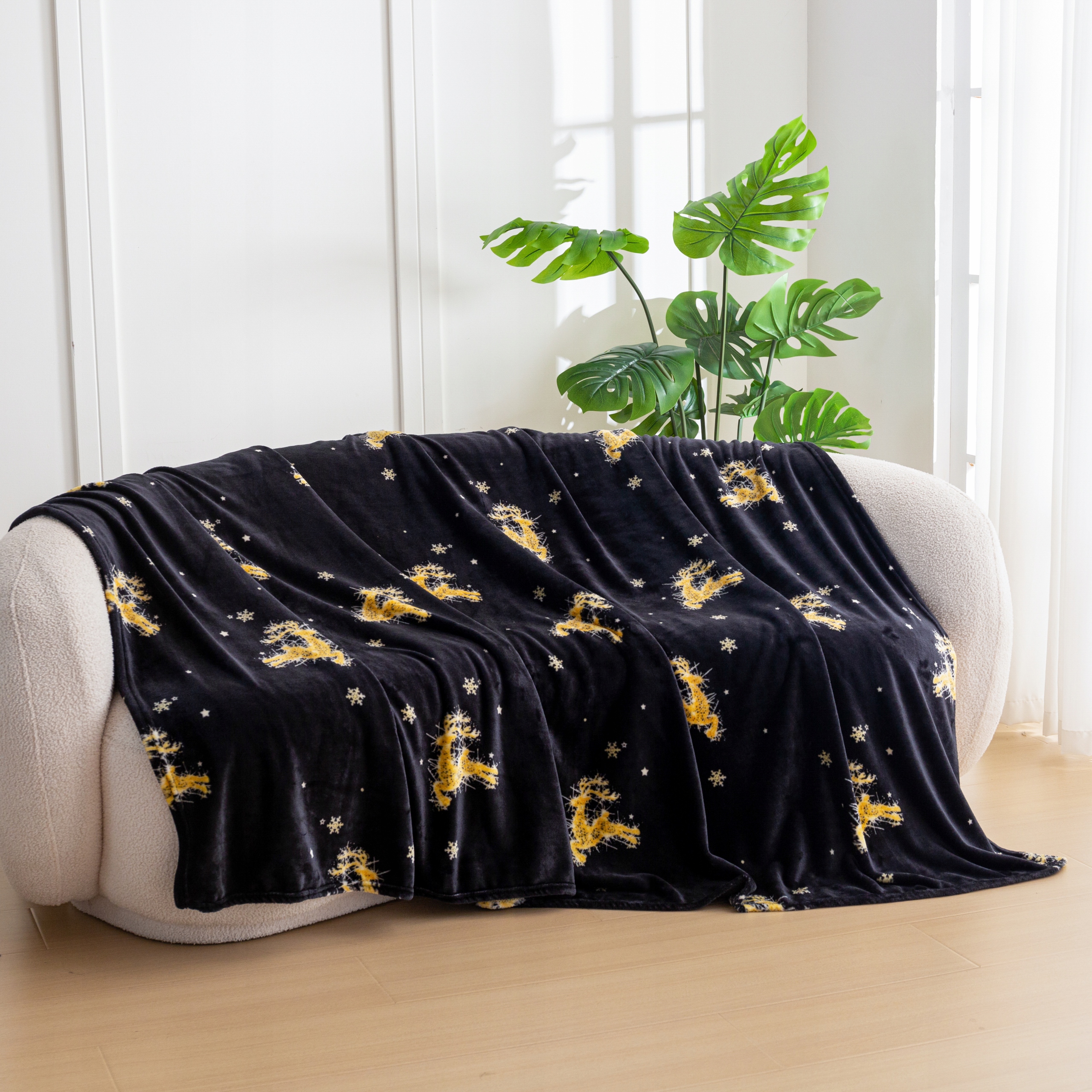 Ковдра 150x200 Різдвяні декоративні золоті олені Різдвяні зірки