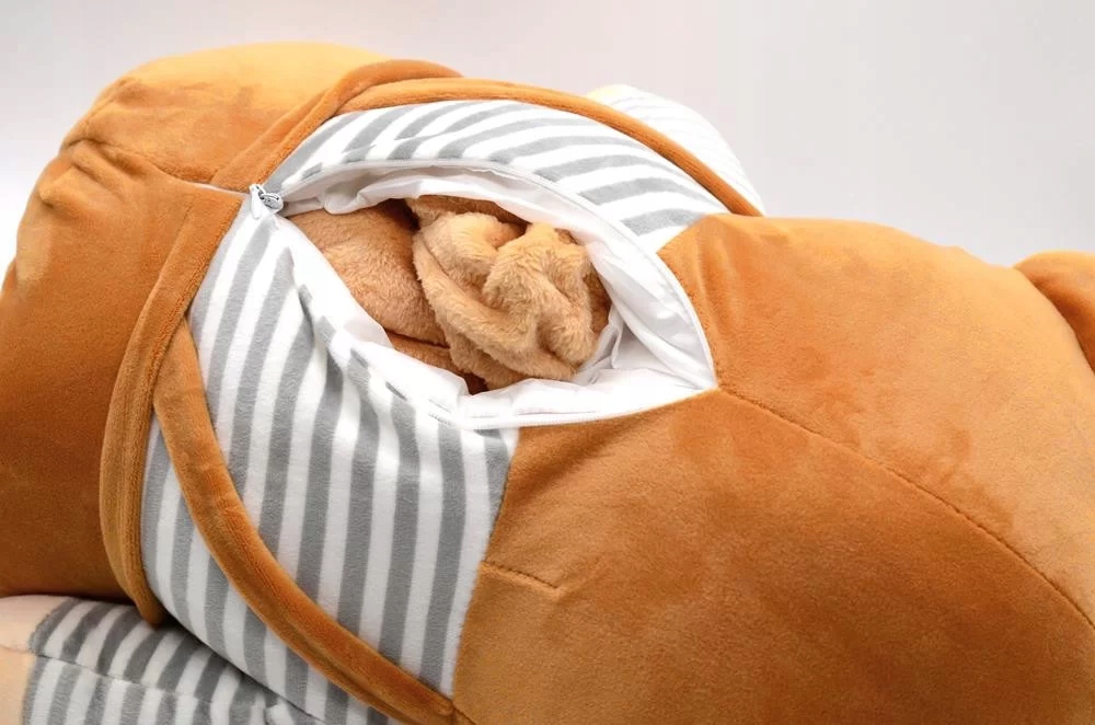 КОВДРА-МАСКОТ 2 в 1це ідеальний спосіб порадувати когось, він стане чудовим подарунком як для дитини, так і для дорослий. Розкривши непомітну блискавку, ми можемо дістати дуже приємну на дотик ковдру всередині плюшу, яка зігріє нас у холодні дні. Знявши ковдру, талісман не сильно втрачає свій об’єм, тому його можна використовувати як подушку. Крім того, черевце талісмана можна використовувати як відсік для речей. Тканина, з якої був виготовлений талісман - дуже тепла і приємна на дотик плюшева тканина.