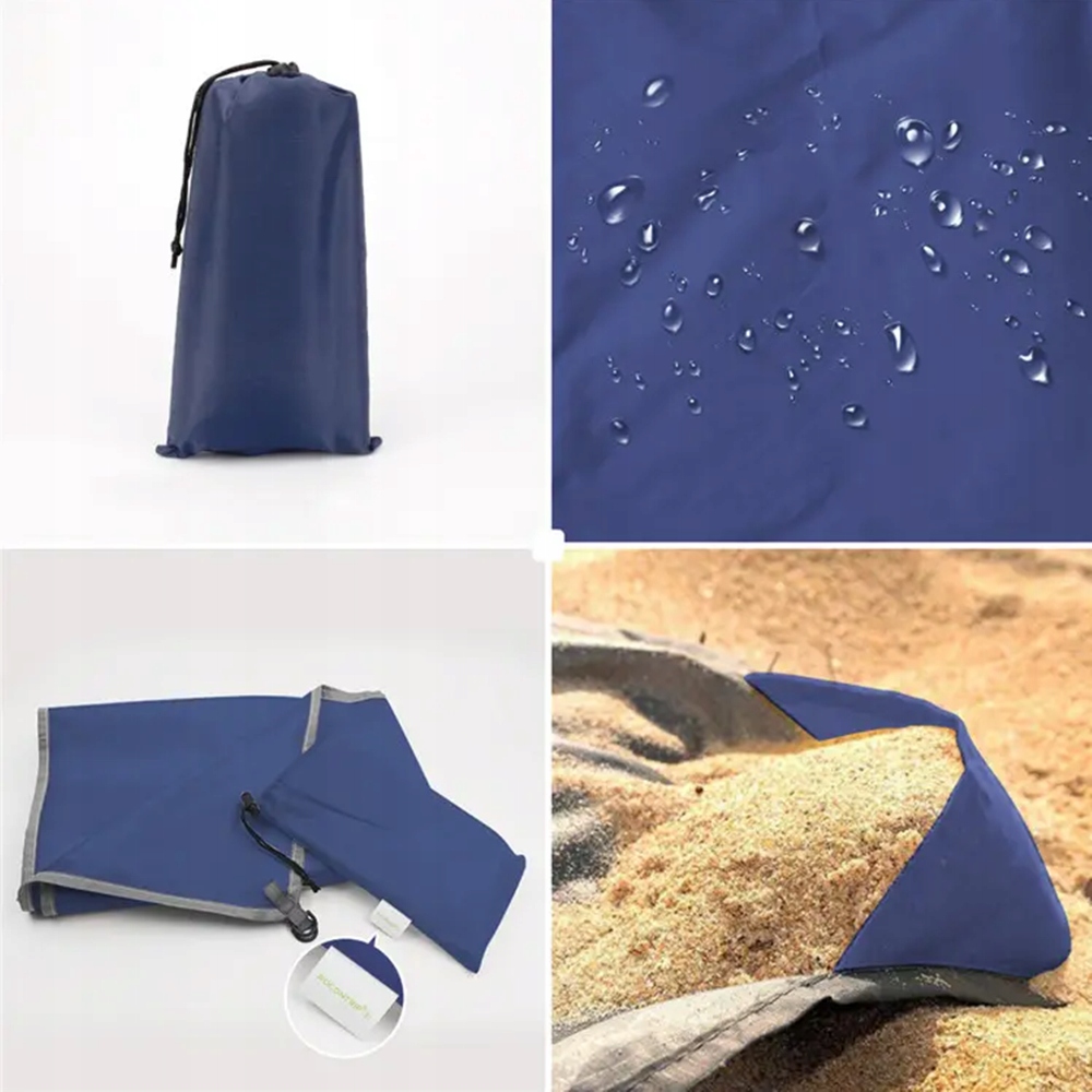 Пляжний килимок можна вільно складати та розкладати залежно від ваших потреб. У розкладеному вигляді він має розмір 140 см x 200 см. У складеному вигляді він займає лише 13 см x 20 см і його дуже легко транспортувати. Водонепроникний
