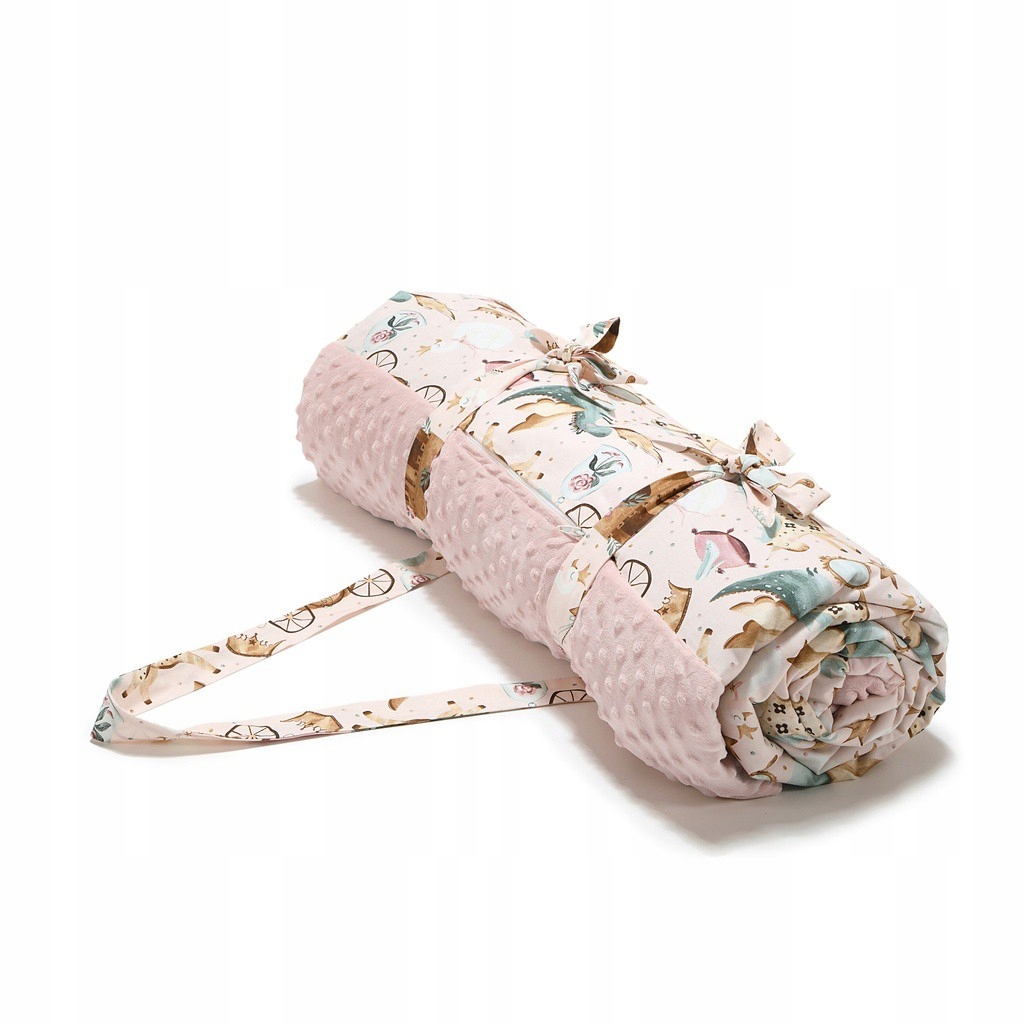 Килимок для пікніка готовий їхати з вами в будь-які поїздки за місто, засмагати і особливо сімейні пікніки. Делікатне наповнення пікніка робить його ідеальним і вдома: як ігровий килимок (замість твердої підлоги). На одному з країв вшиті дві стрічки, щоб легко і швидко зав'язати килимок, і одна довша стрічка, яка забезпечує зручність під час транспортування.