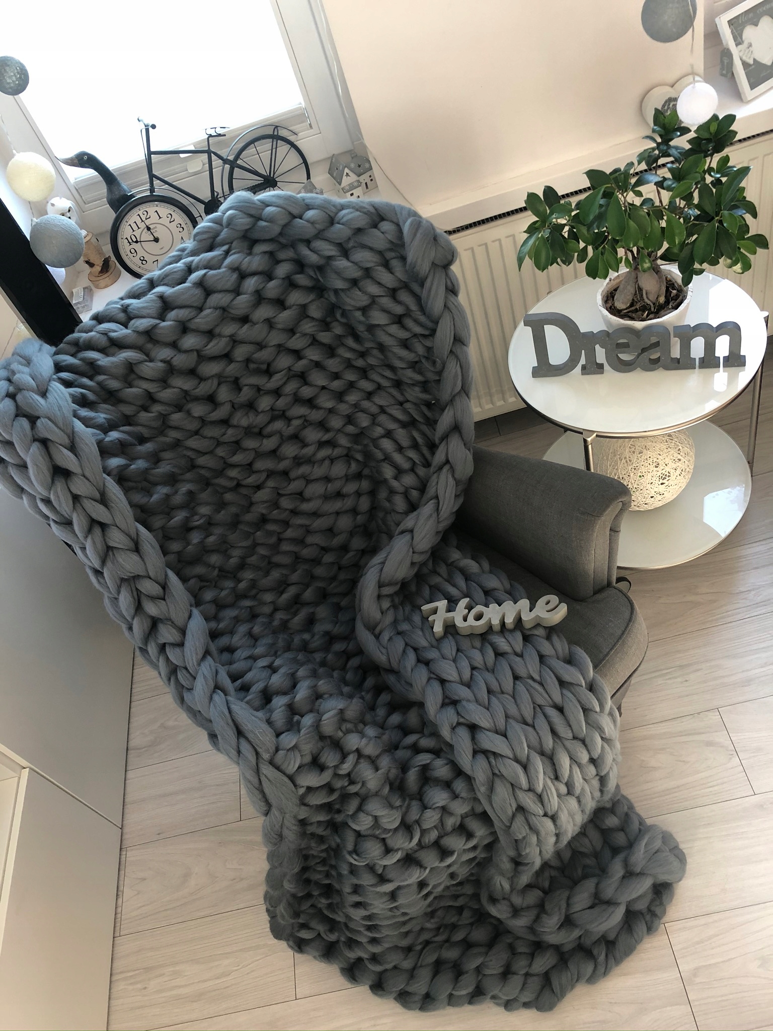 Предмет продажу декоративна ковдра, плед, покривало ручної роботи: з камвольної вовни, колір графіт - темно-сірий.