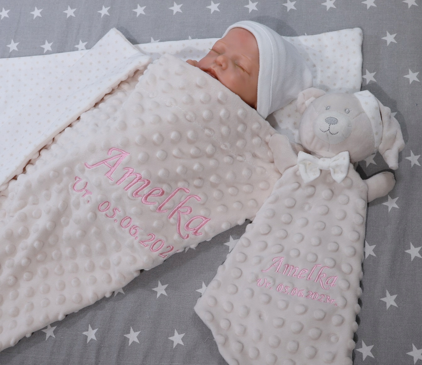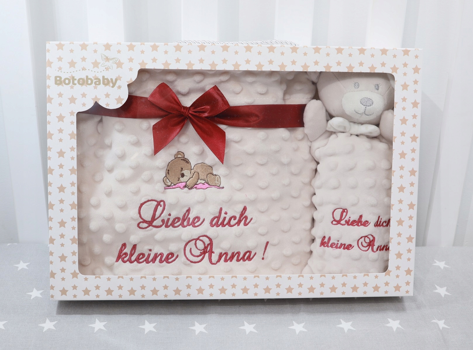 Також на ковдрі можна вишити все ім'я, а на м'якій іграшці - тільки ім'я.