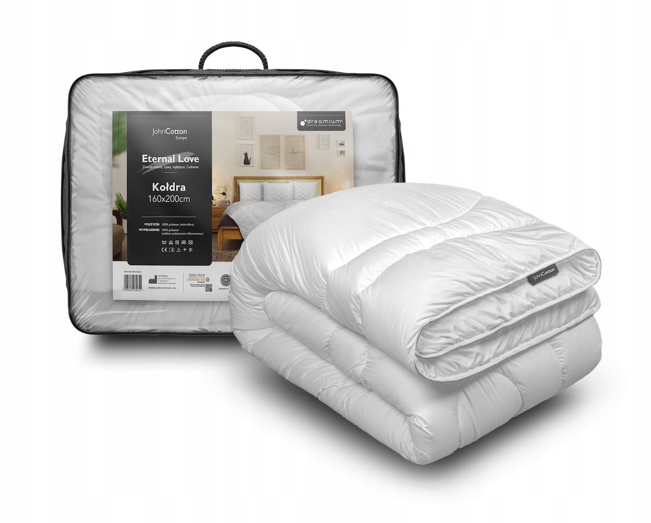 У цій новій лінійці продуктів John Cotton використовується найсучасніша технологія DreamiumⓇ для комфортного сну. Відчуйте себе набагато пухнастішим. Відчуйте затишне тепло – на 20% більше теплоізоляції, ніж стандартні продукти. Радуйте око ексклюзивним стьобанням. І просто знайте, що ця унікальна приємна якість залишиться з вами набагато довше - Eternal Love не має собі рівних у своїй довговічності.