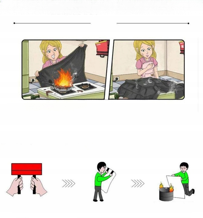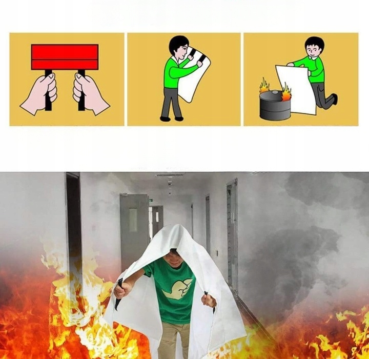 ковдра не залишає жодного безладу, що відрізняє його від традиційного пожежного. Він ідеально підходить для кухні, камінів, автомобілів, грилів та кемпінгів. Він також може бути використаний як захисне покриття в надзвичайній ситуації, ви можете обернути його і спробувати евакуювати з пожежі. Він не має терміну придатності і стійкий до високої температури, що досягає 580 ° C. упаковки у вигляді червоного, добре видимого мішка полегшує доступ до надзвичайних ситуацій.