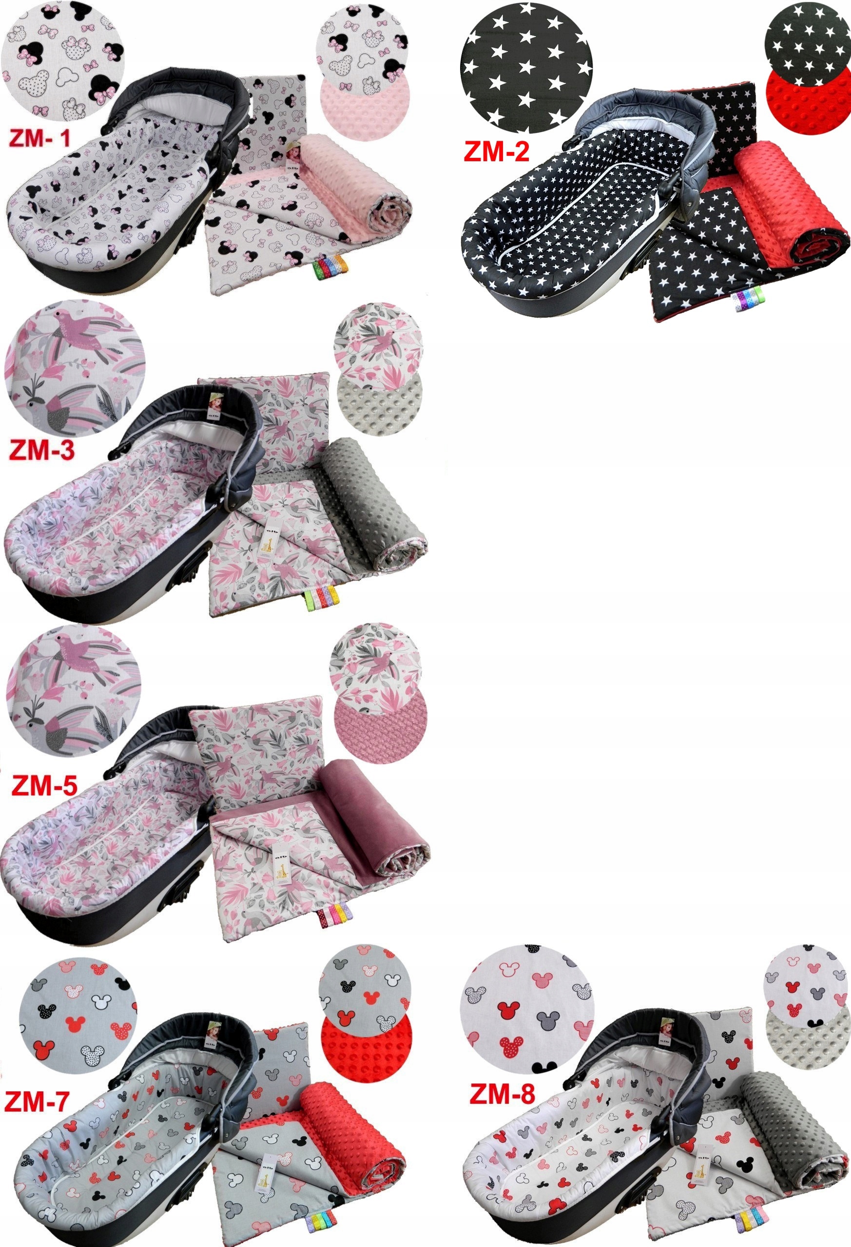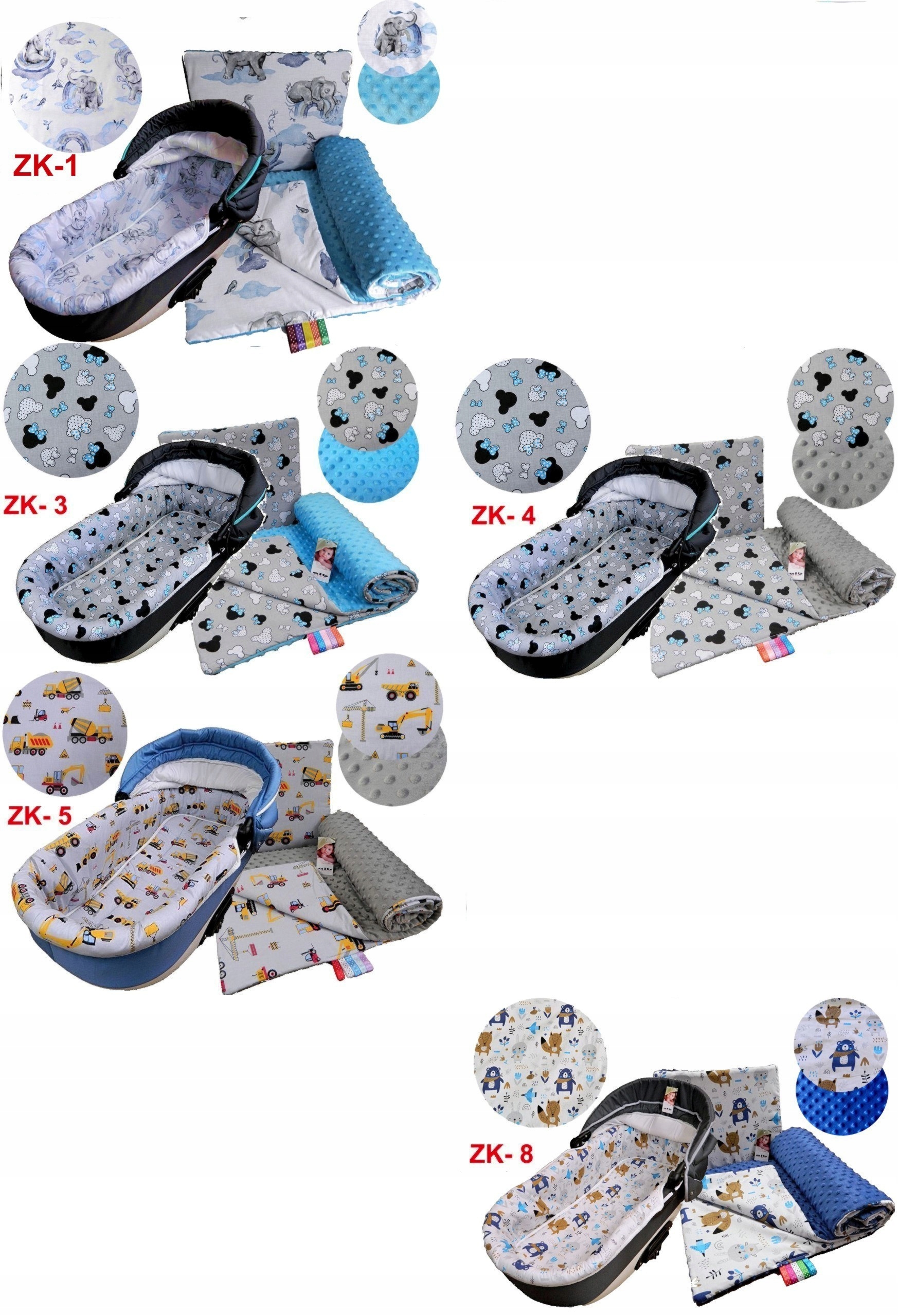 Ковдра і подушка двосторонні. З одного боку бавовняна тканина (окрім стьобаного зірочками - поліестер), а з іншого дуже приємна і тепла на дотик тканина VELVET з цегляним переплетенням або MINKY з бульбашковим тисненням або гладка тканина MINKY. Всередині грілка для одягу щільністю 120г/м2 - ковдра і подушка 400г/м2